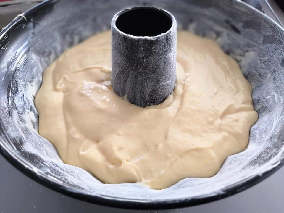 - A kuglóf formát kikenjük margarinnal és meghintjük rizsliszttel.