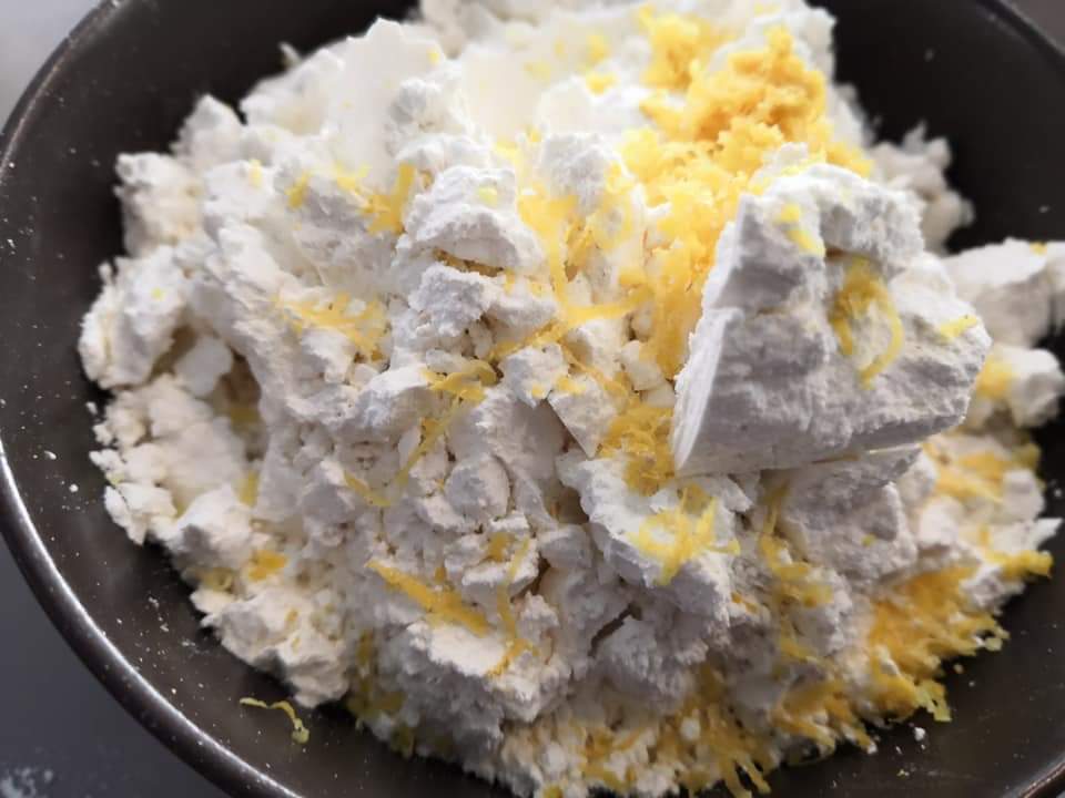 - Belekeverjük a reszelt citrom héját, lisztet, vaníliás cukrot, sütőport és végül óvatosan a felvert tojás fehérjét.