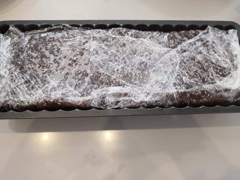 - Egy őzgerinc formát folpackkal kibéleltem, belöntöttem a masszát.