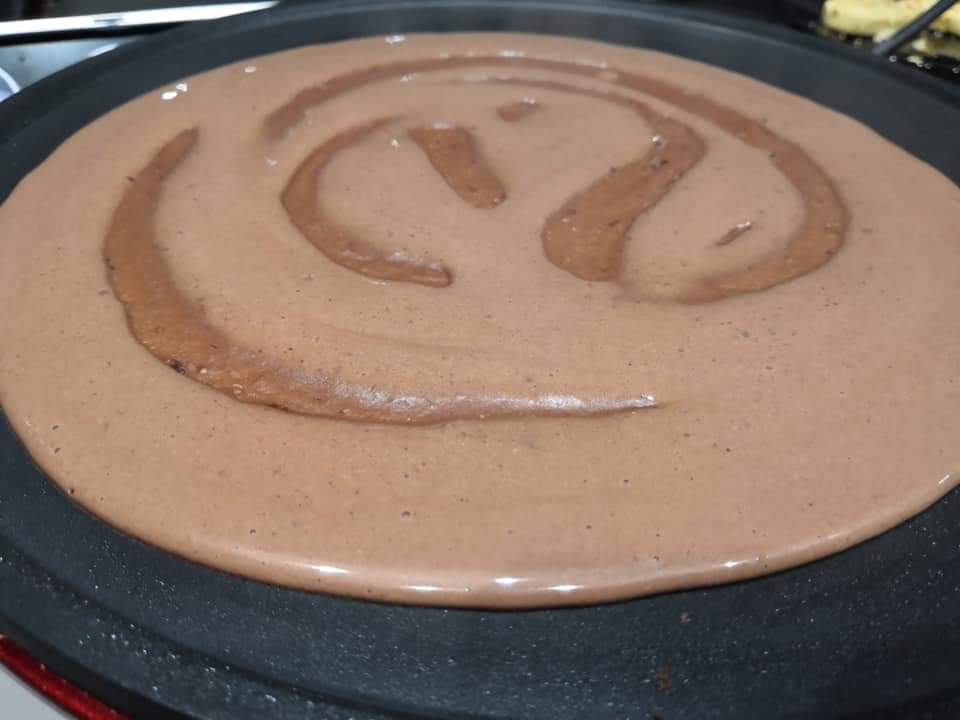 Hirtelen bevillant egy fotó, nagyon rég láttam, igen régóta készülök rá, de valahogy mindig elmaradt. Veronika Vizler-Bokréta kakaós palacsintája mély nyomokat hagyott bennem, pont ideje volt készíteni vmi hasonlót.