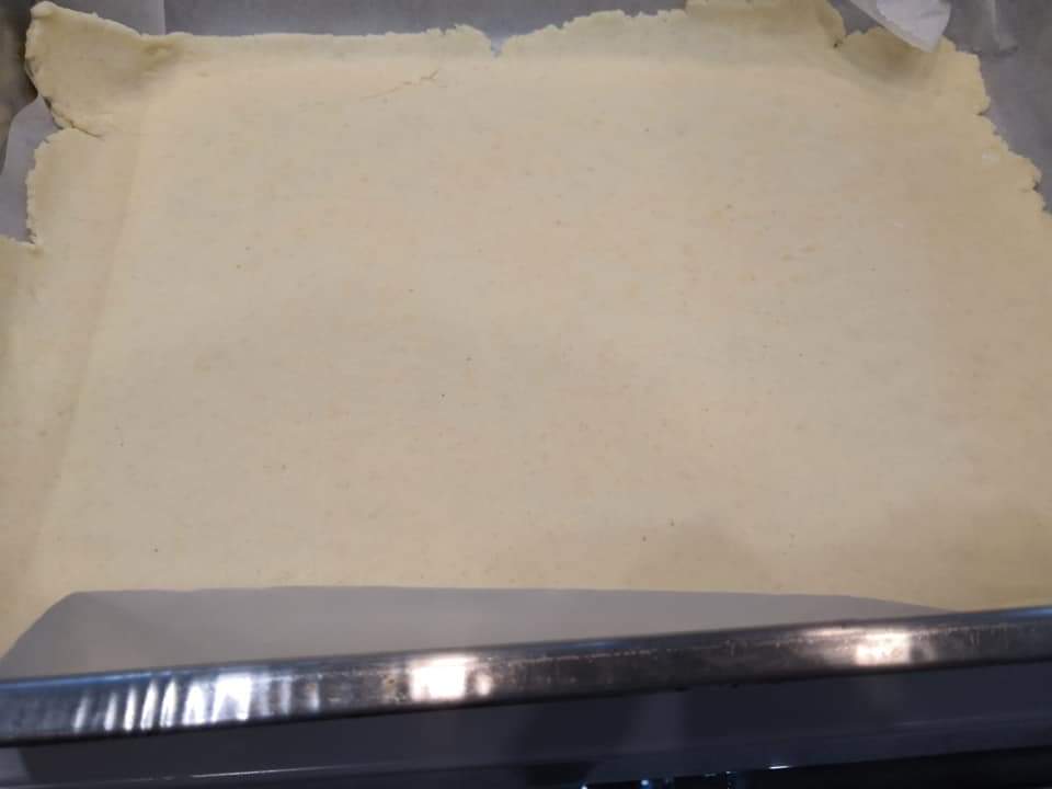 - TIPP: sütőpapíron nyújtom, így könnyen a tepsiben lehet emelni a vékony tésztát