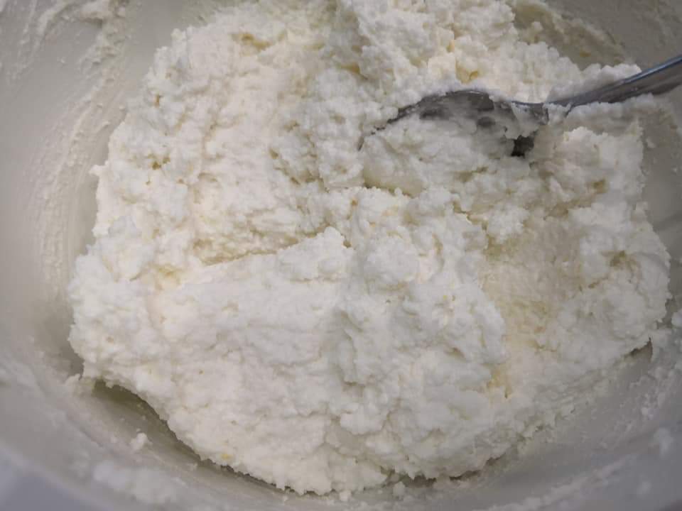 - A cukrot, a túrót, a lisztet és a reszelt citrom héját alaposan összekeverjük, a tojás fehérjét a sóval kemény habbá verjük és óvatosan a túróhoz keverjük.