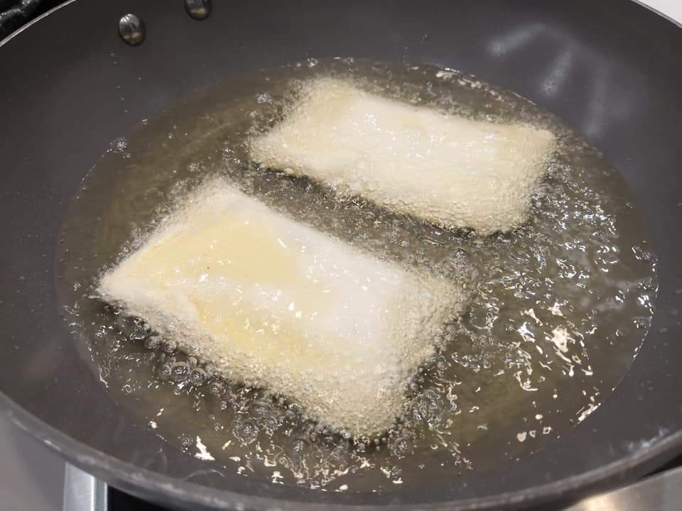 - Bő, forró olajban süssük meg mindkét felét. Nagyon gyorsan sül!