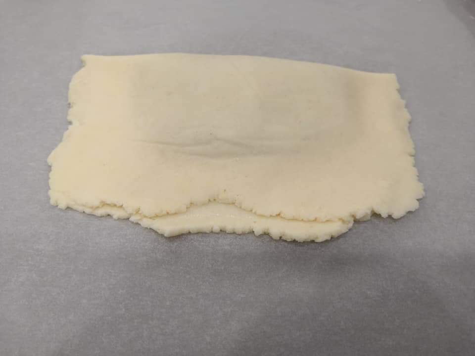 - Hajtsuk félbe és jól nyomkodjuk le a szélét,