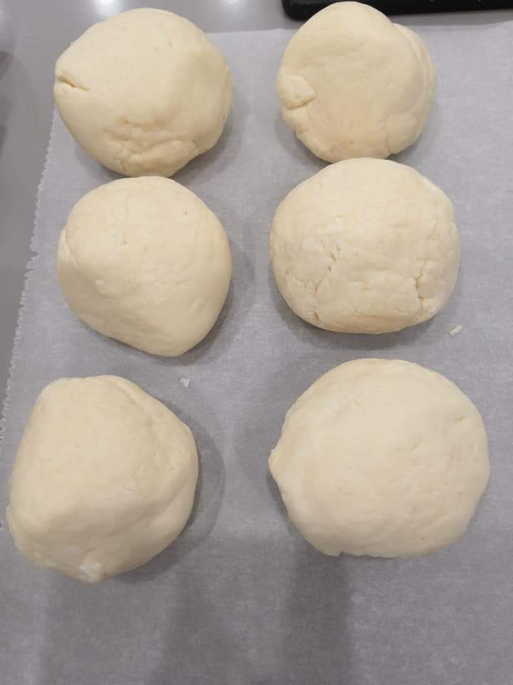 - A tészta hozzávalóiból rugalmas tésztát gyúrunk. A vízzel óvatosan, inkább fokozatosan adjuk hozzá.
