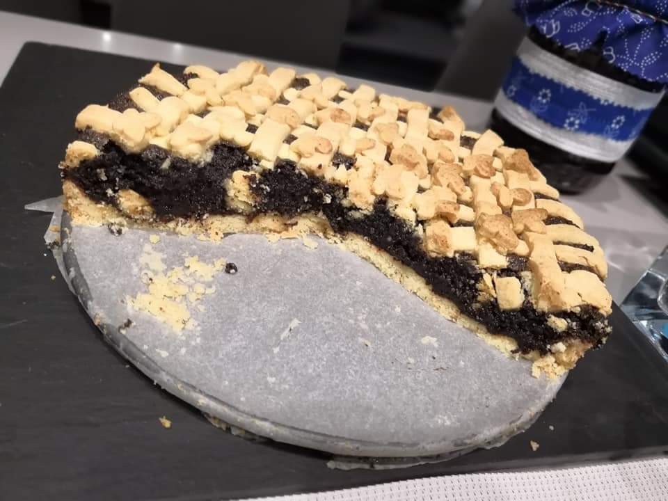 - A begyúrt linzer tészta kb 2/3-át kinyújtjuk és kibélelünk vele egy 26 cm-es tortaformát. A tésztát vastagon megkenjük lekvárral, ráöntjük a mákos tölteléket és berácsozzuk a tetejét. A pillangó pedig hab a tortán 😉