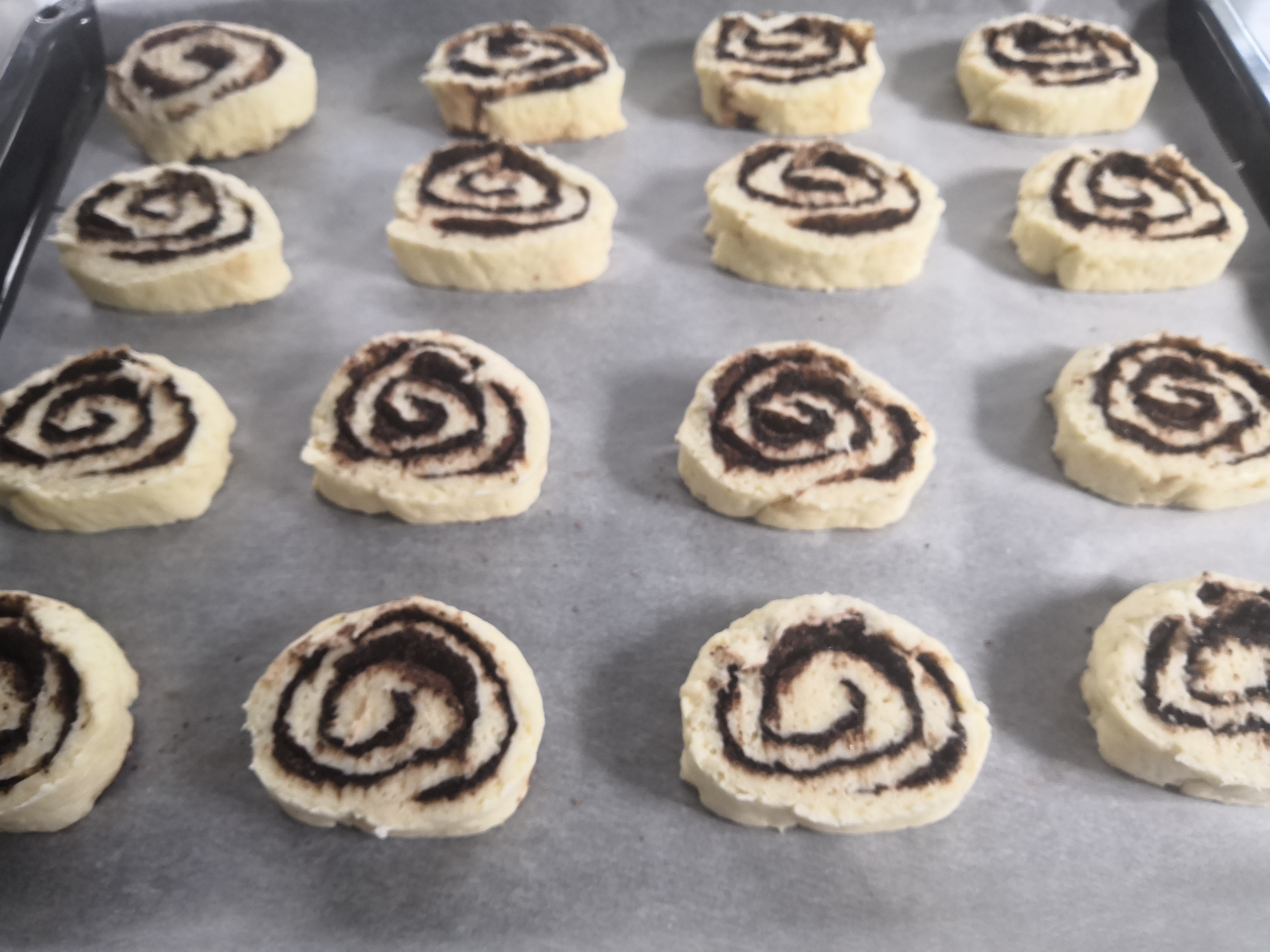 - Éles késsel szeleteljük és sütőpapírral bélelt tepsire tesszük