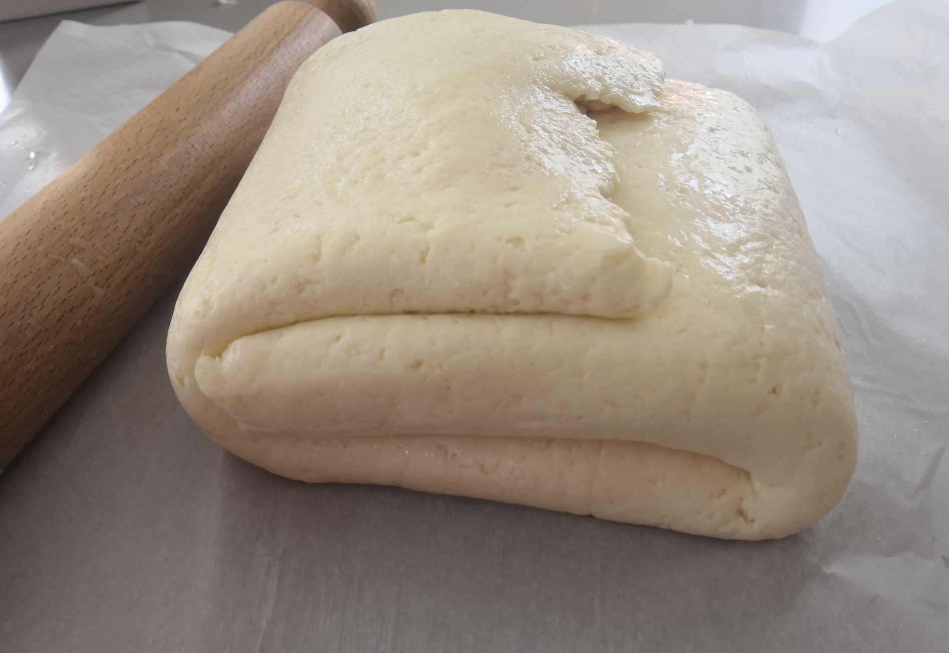 - Olajos kézzel (én gumikesztyűt szoktam húzni), enyhén olajos felületen vékonyra nyújtjuk és jobbról, balról, fentről, lentről hajtogatjuk.
