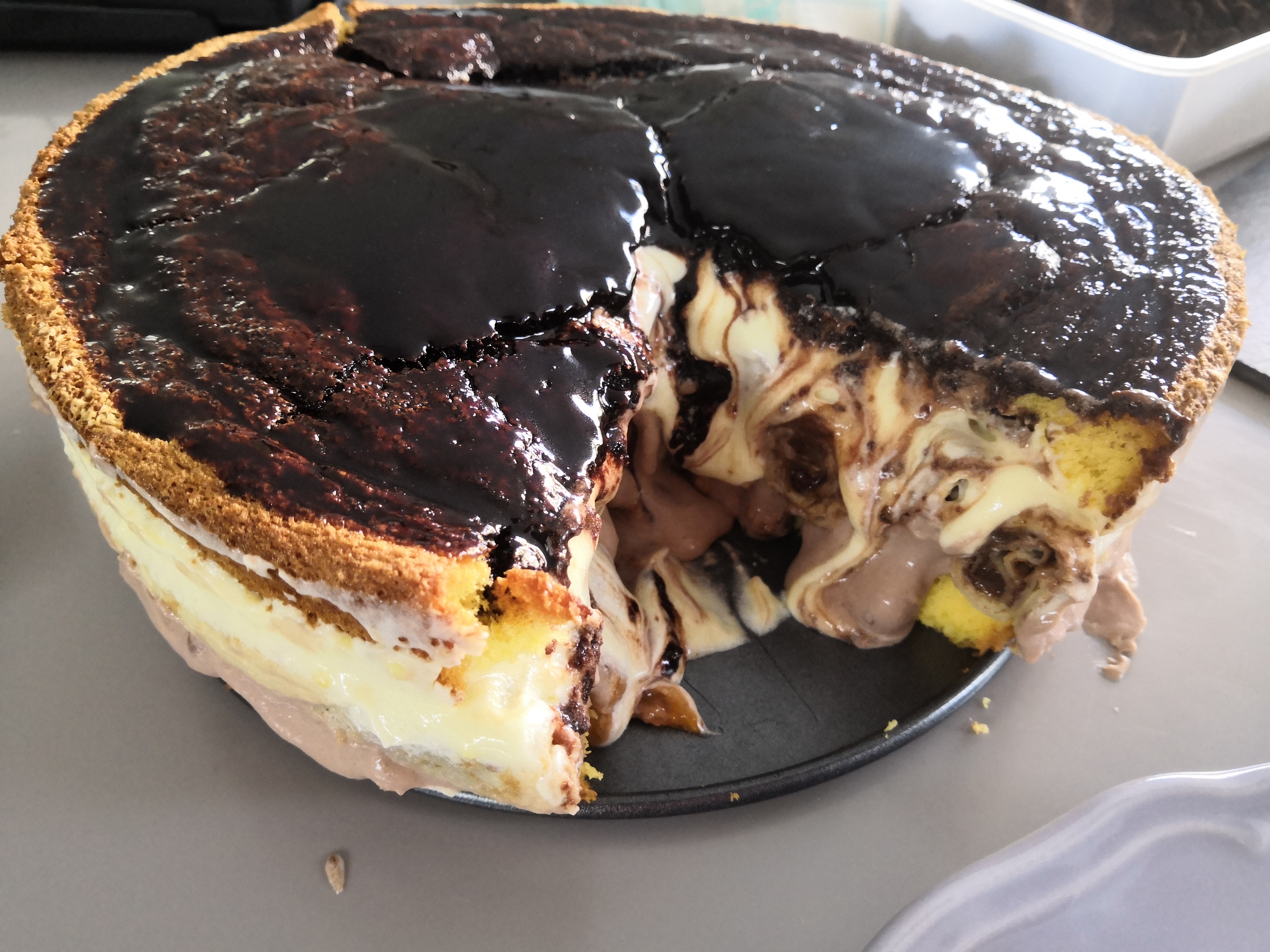 Csak valahol elszúrtam, de kegyetlenül. Pedig minden adott volt a tökéletes műhöz: a kamasz éppen nem kamaszodott, sőt, pár palacsintát át is vállalt. Totyogó látó és halló távolságon kívül, semmi zavaró körülmény, tényező. Mondjuk a kamasz jelezte a krém kavarása közben, hogy a csokis híg. Legyintettem, dehogy híg, csak meleg, kavard, fújd, hűtsd. 3x szólt, hogy a vaníliás más, kemény, formás, a csokis hideg, de lágy. Oda se neki, a habfixáló megfogja… Hát nem fogta. A hűtő sem segített.