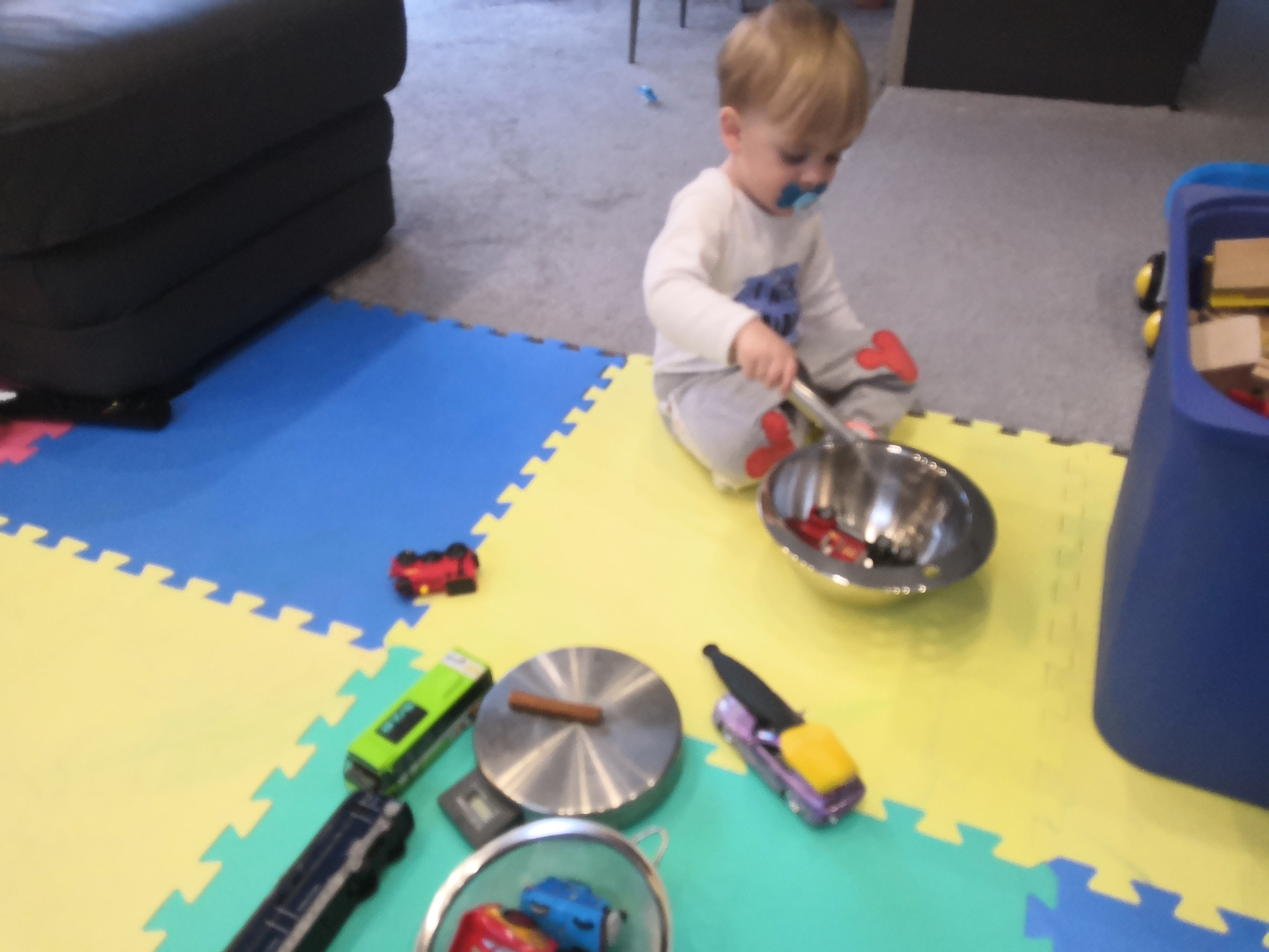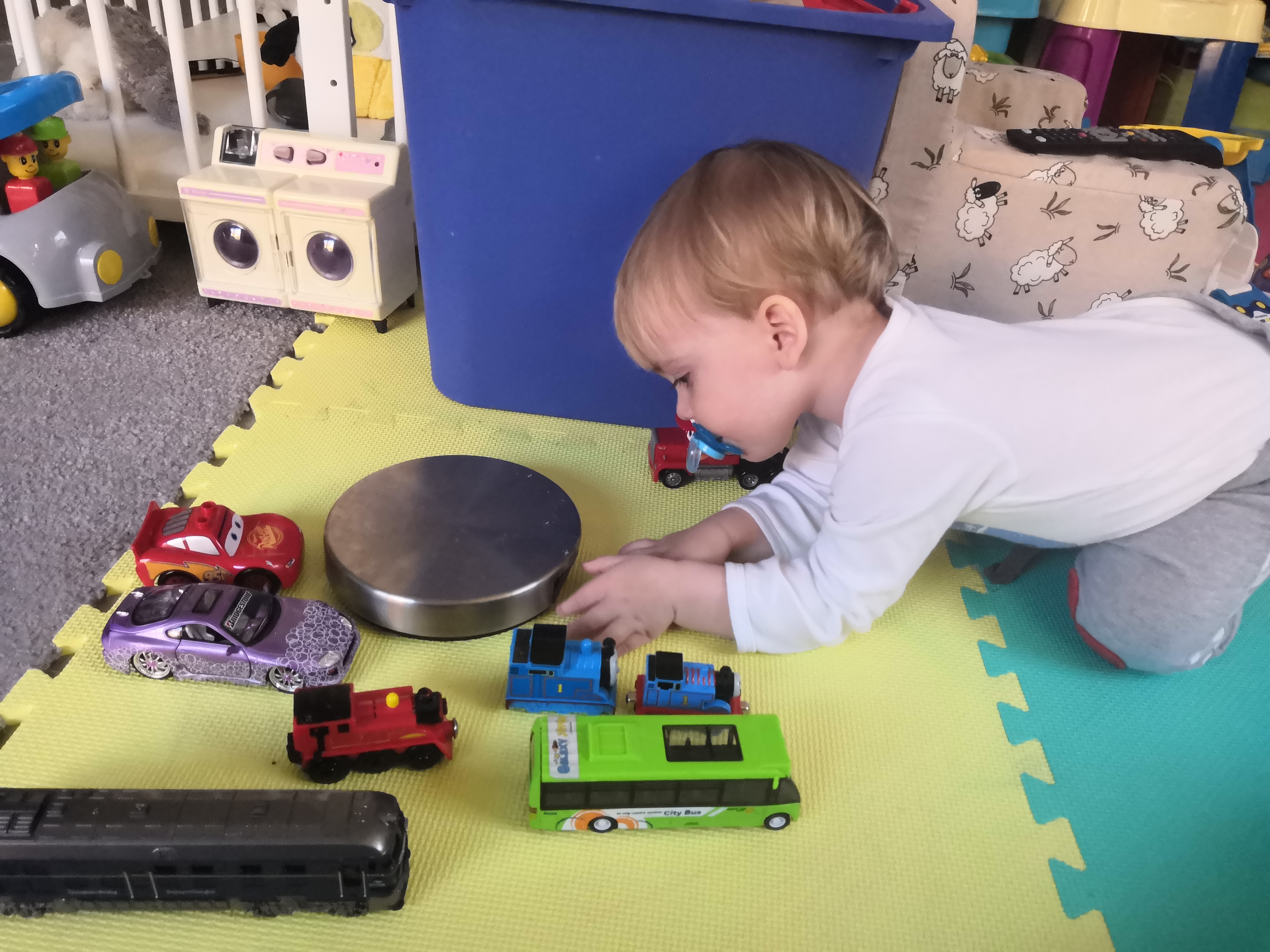 Totyogó úgy döntött elég volt a rizsből, sült krumpliból, bébi papipból, anya főztjéből: kézbe vette a vacsora dolgot. A menü sorát egyenlőre homály fedi. Hiába faggattam hogyan terítsek, milyen tányért, evőeszközt készítsek, mit írhatok a menü kártyára, röpke, félszavas válaszokat kaptam. Többször elhangzott: busz, kami, vonyat, kék busz, tómasz, busz, mama, vonyat, brrrr, kamió, liszt… Én, mint nem kezdő konyhatündér próbáltam megfejteni a mozdulatokat, ellesni az új technikákat, lefordítani a cumi mögül feltörő hangokat. Az apró kezek szorgosan aprítottak, kavartak, dobáltak, püföltek, kentek, fentek. Szorgalmasan jegyzeteltem a hozzávalók listáját, az elkészítés módját.