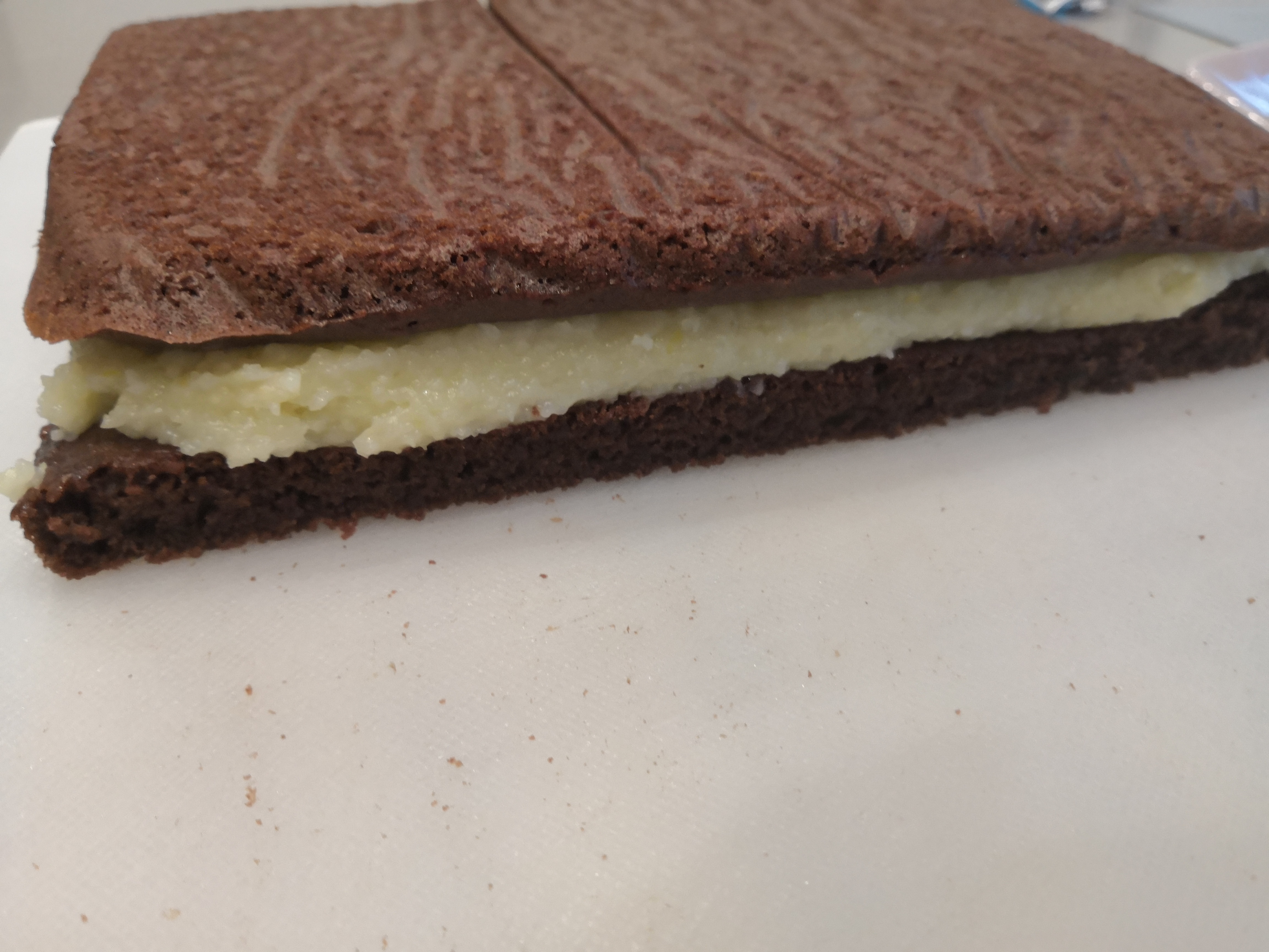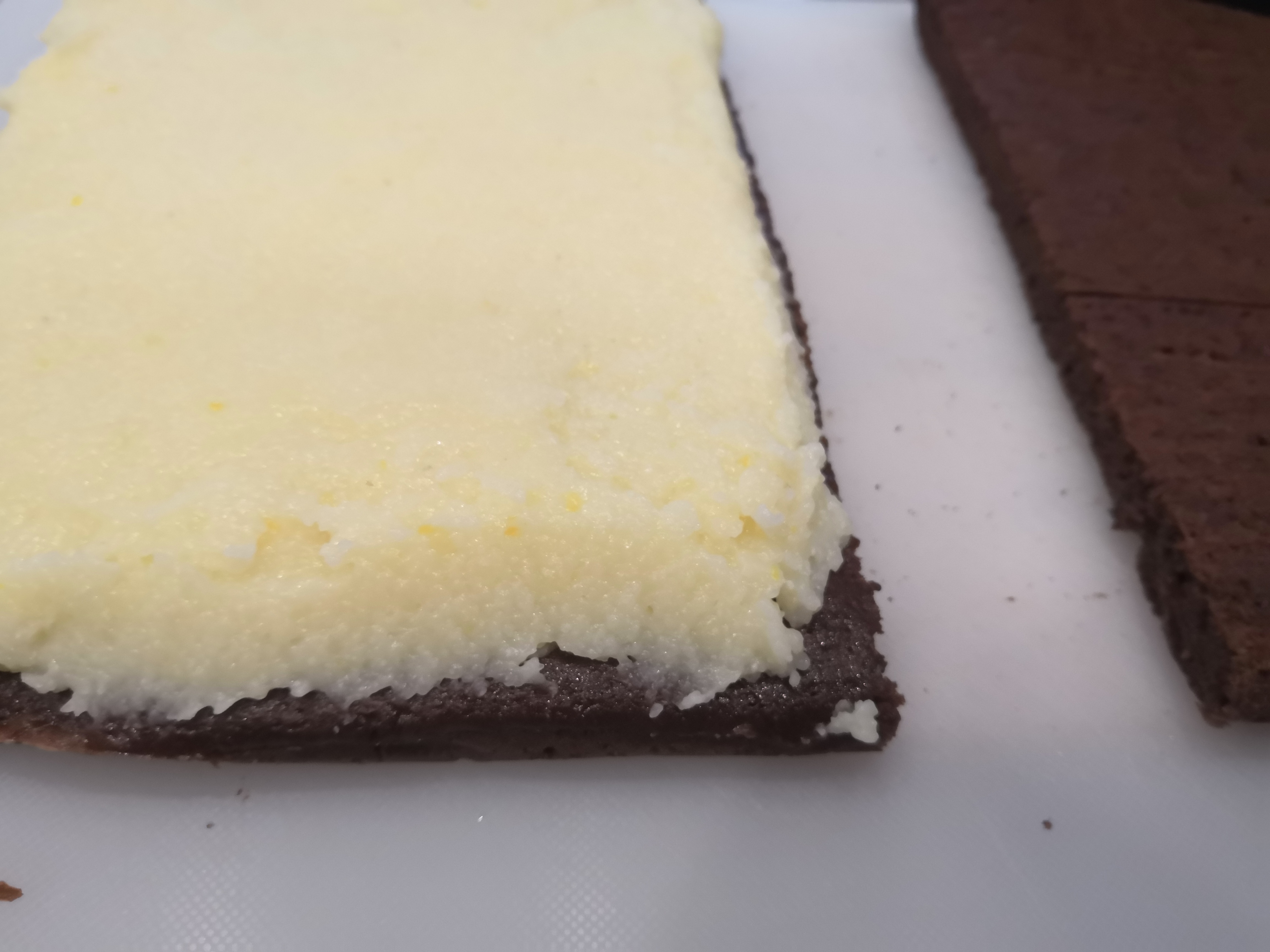 - A krémmel megkenjük az egyik piskótát, majd befedjük a másik lappal.
