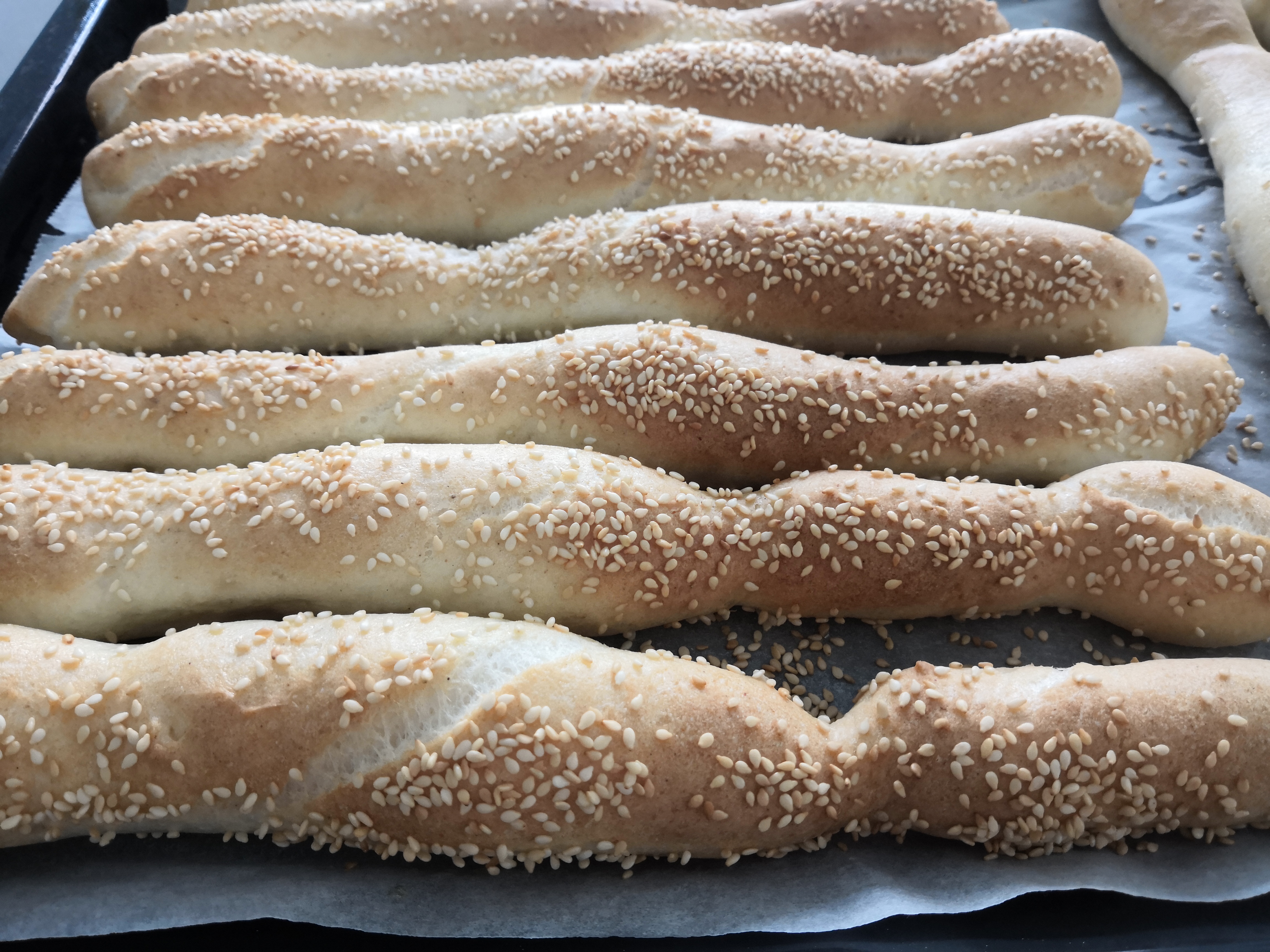 Gyönyörű padlizsánt kaptam ma a boltban, szinte sajnáltam krémet gyártani belőle. Mivel a totyogót leszámítva nagy padlizsán rajongók vagyunk, ezért minden szánakozást félretéve fenséges krémet gyártottam a gyönyörű padlizsán példányokból. A krém mellé viszont valamiféle mártogatni való is dukál, ezért gyorsan sütöttem pár rudacska grissinit, jó sok szezámmaggal. A biztonság kedvéért 2 rudat csupaszon hagytam, hátha a totyogó is tiszteletét teszi a vacsora asztal körül. Erre még a recept végén visszatérek pár gondolat erejéig.