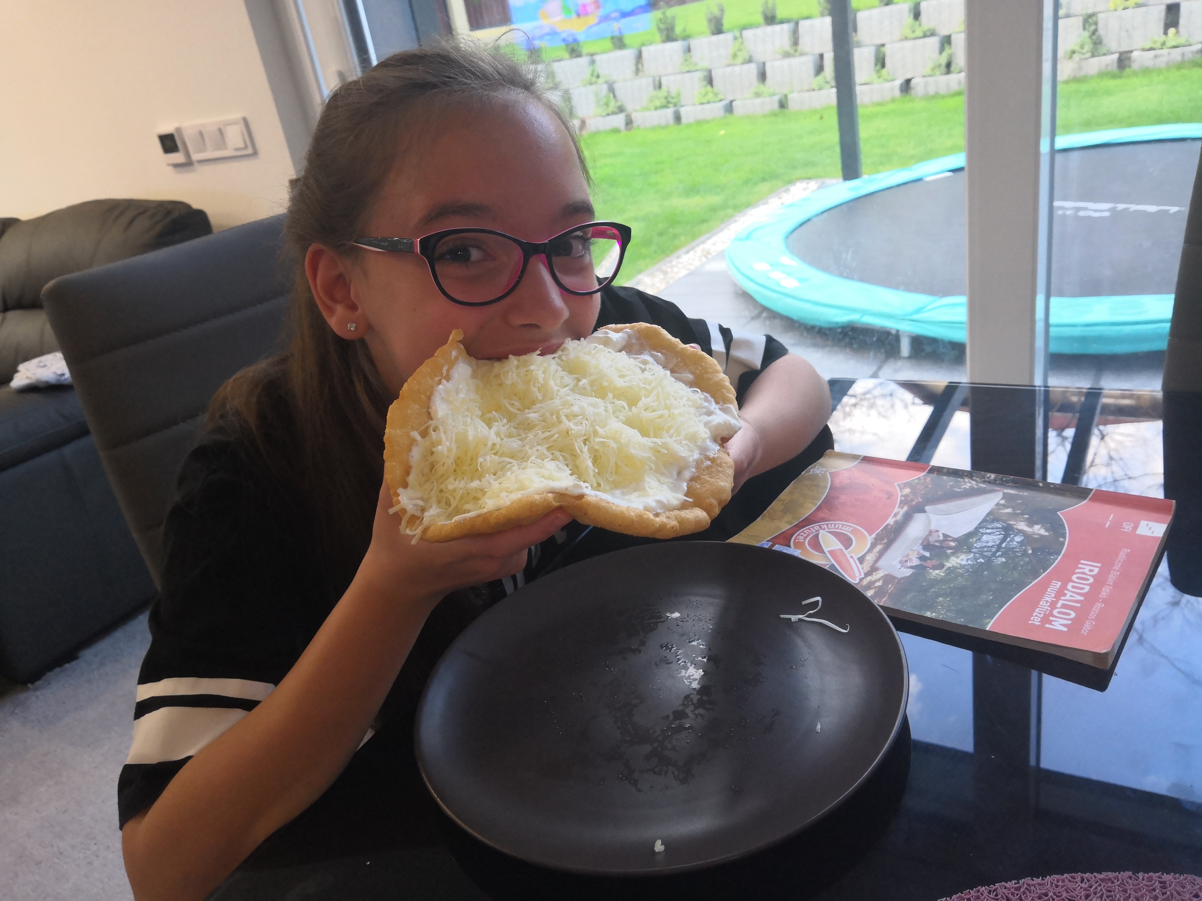 Ma este nem találtuk a kamasszal a közös nevezőt: ő mindenképpen pizzát szeretett volna enni, én pedig nem engedtem a lángosból. Ezért villám sebességgel 2 legyet ütöttem 1 csapással. Így mindenki jól járt, a kamasz persze duplán vacsizott, mert anya!!!! ez a lángos történet tényleg überjó. Legnagyobb örömömre az első lángost a totyogó szépen körberágta, mert anya!!! jopog!!! És minden, vagyis majdnem minden finom, ami ropog.