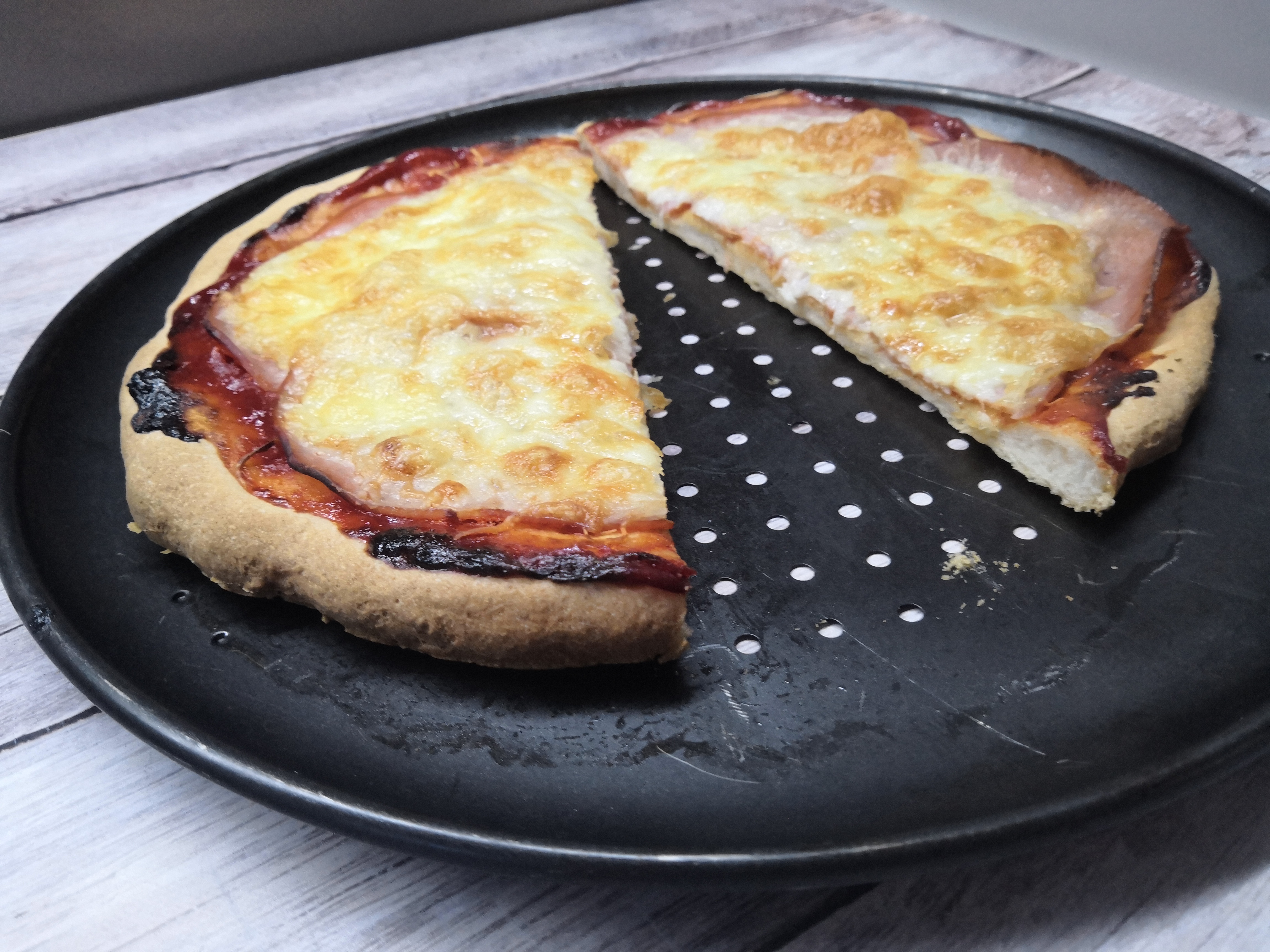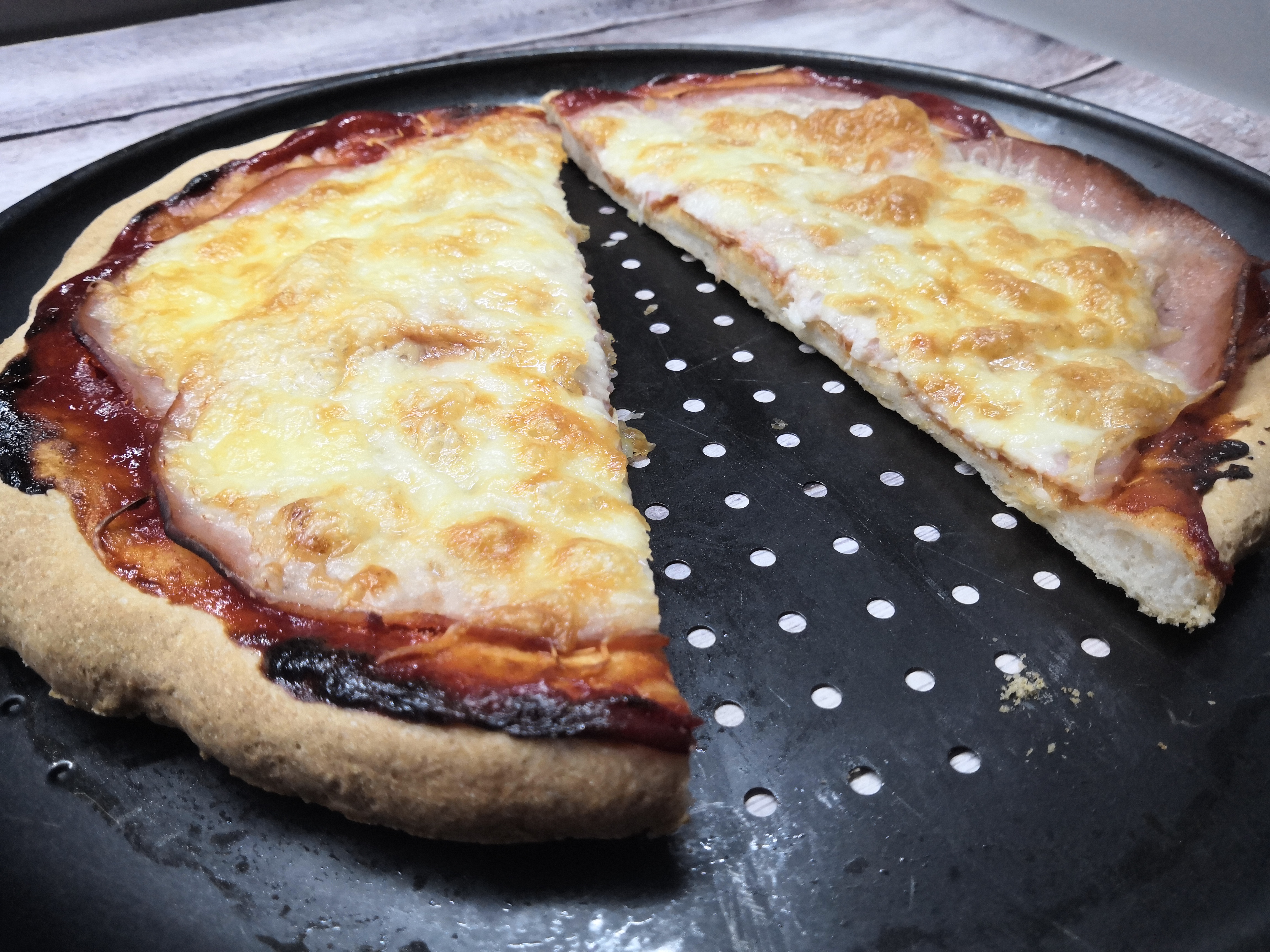 - A pizza lapot én most elősütöttem 180 fokon 20 percet. Ezután megkentem paradicsom szósszal, megpakoltam sonkával és jó sok reszelt sajttal. Visszatettem a sütőbe és készre sütöttem.
