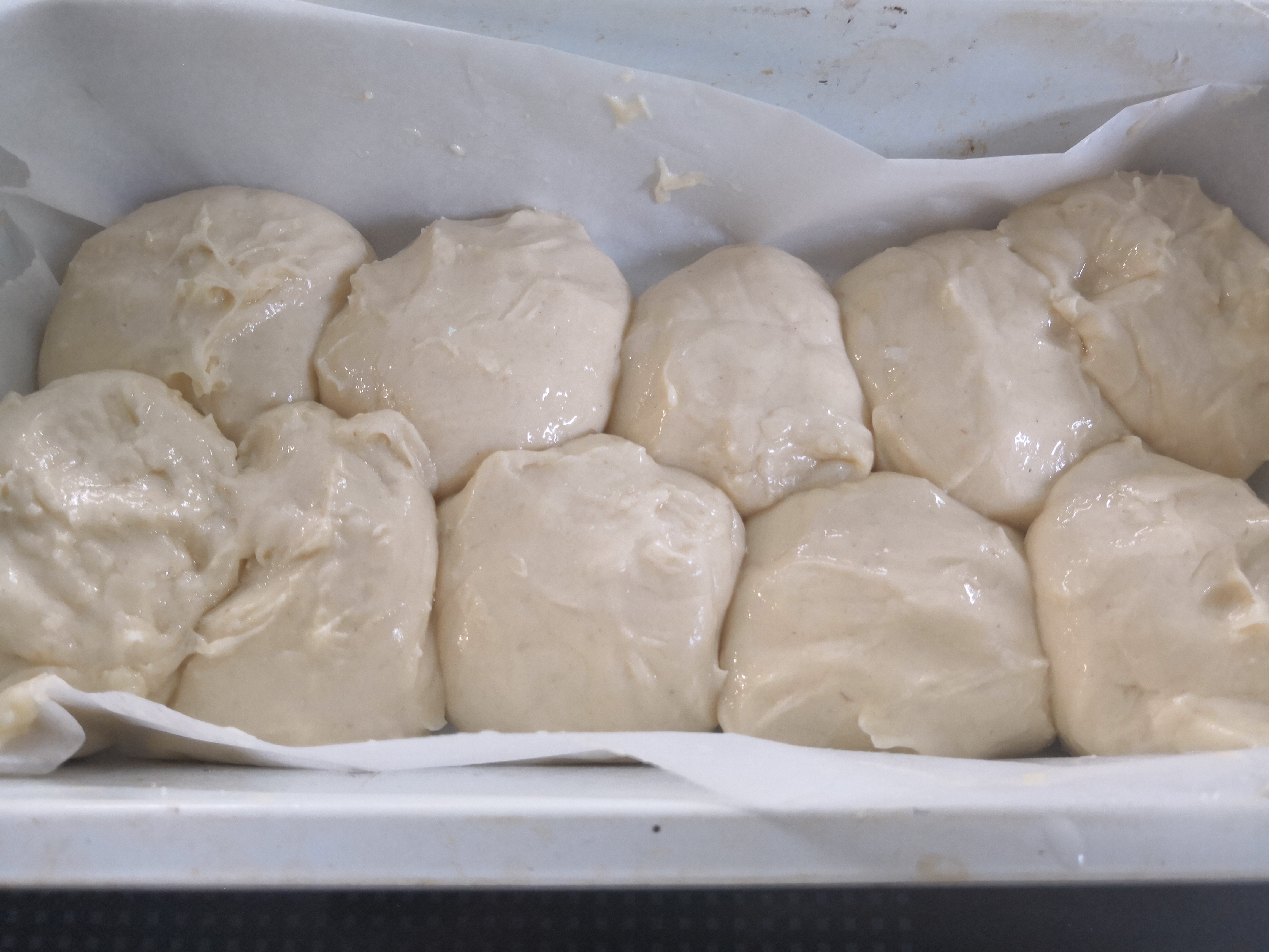 - A golyókat kicsit eltolva, két sorba, szorosan egymás mellé tesszük a tepsibe