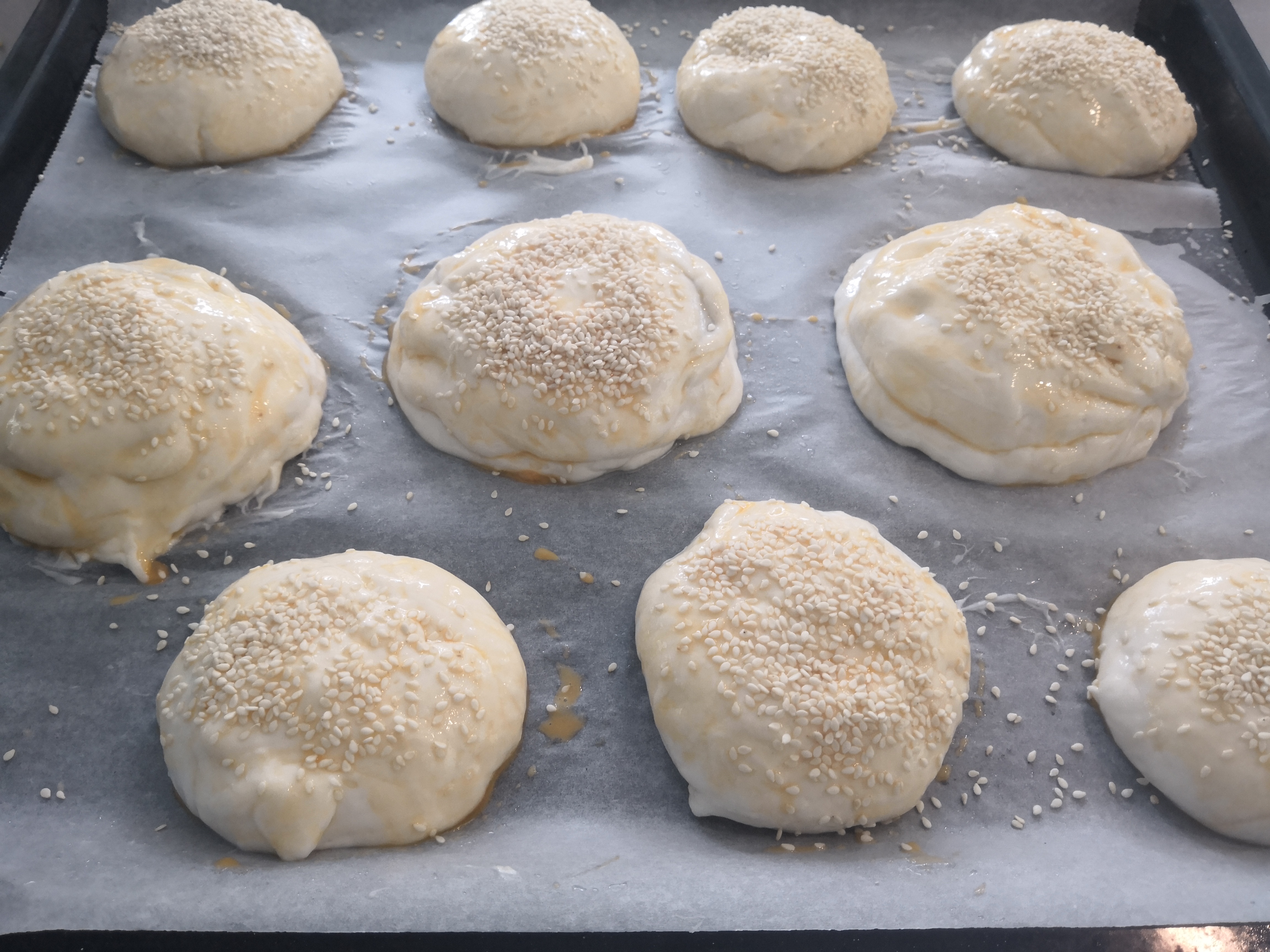 - A tetejét lekenjük tojással és megszórjuk szezámmaggal