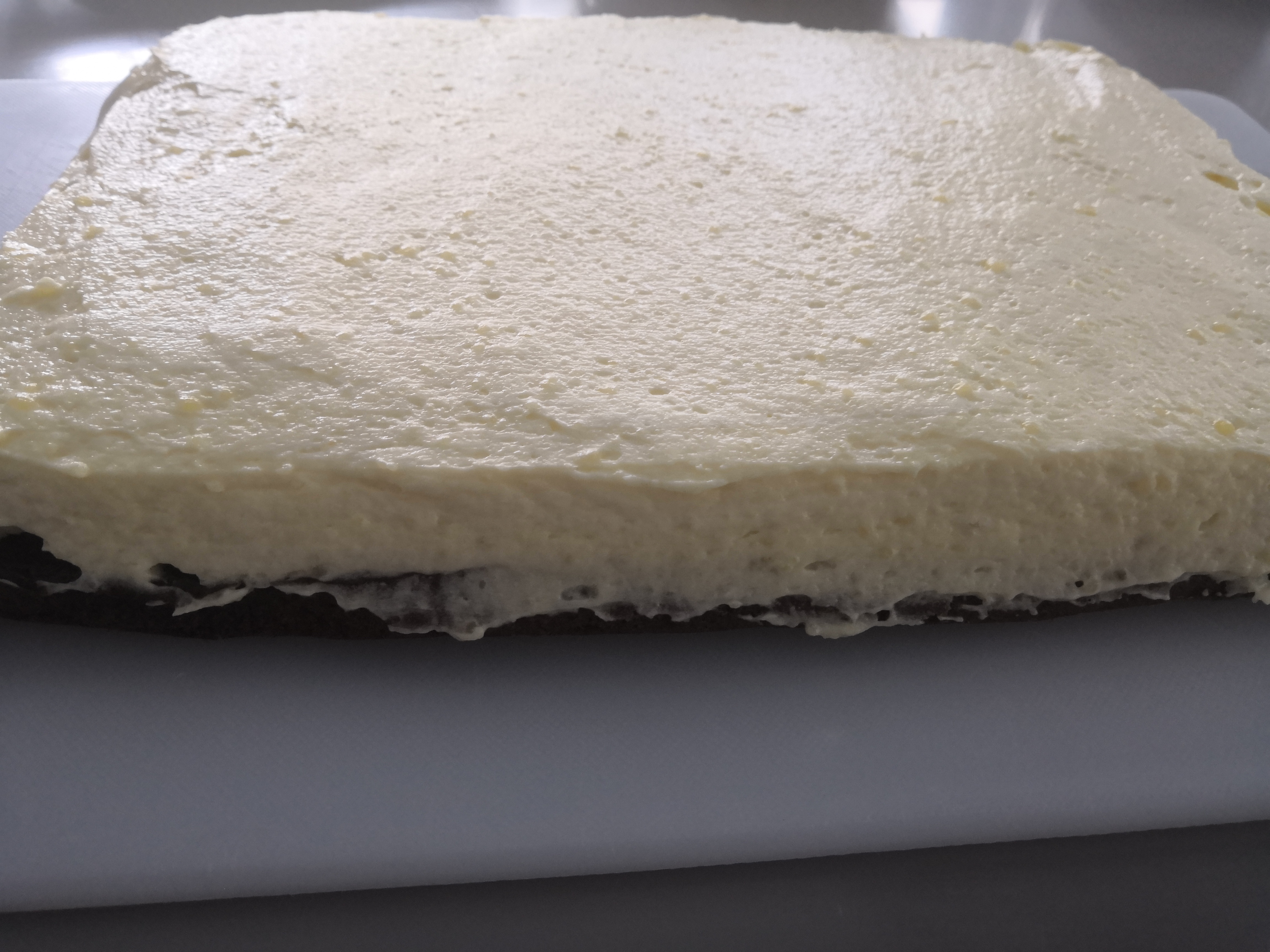 - A tészta hozzávalóit egy kézi habverővel alaposan összekeverjük és sütőpapírral bélelt tepsibe tesszük (kb 25×35 cm-es tepsi)