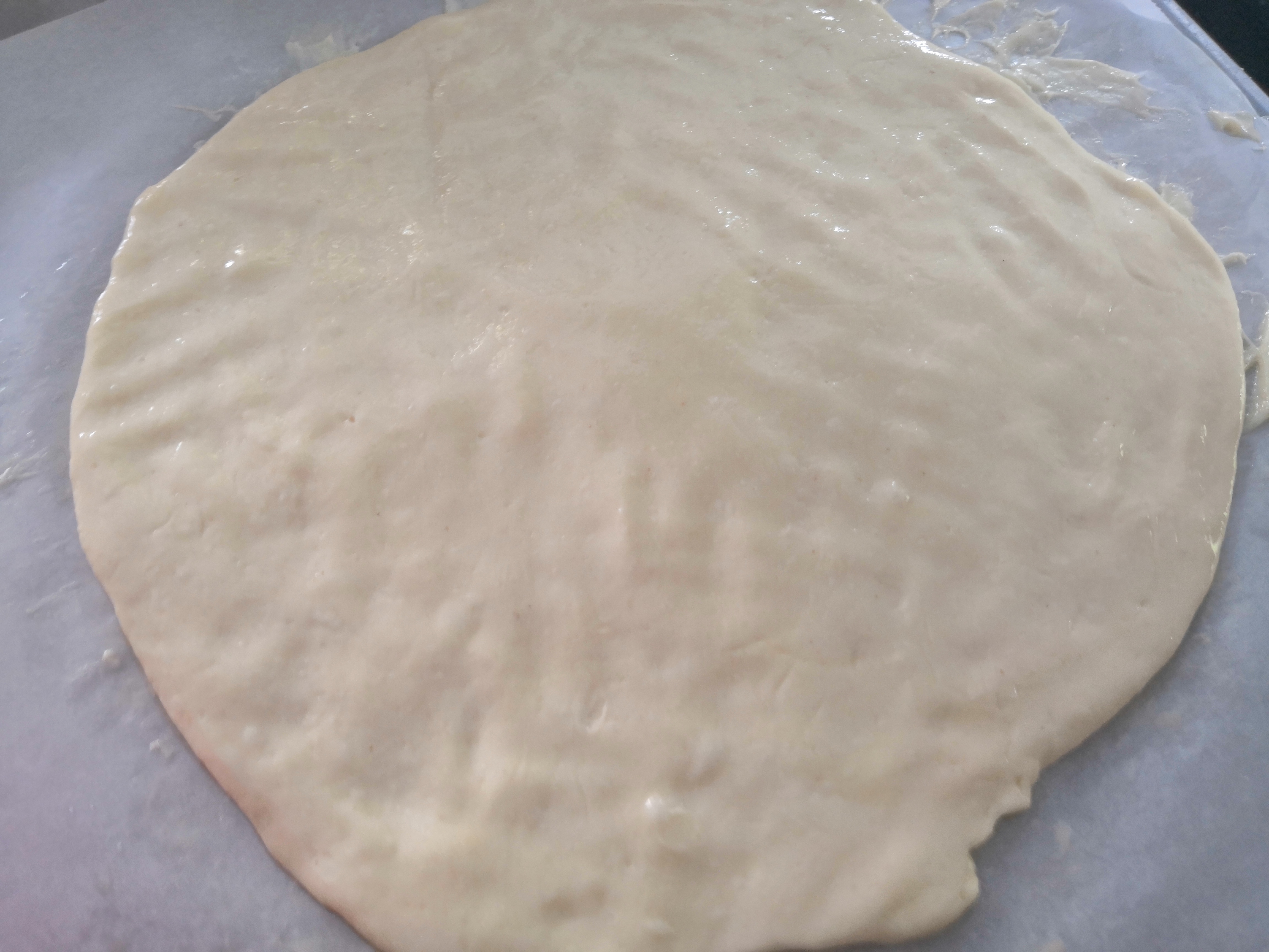 - Én olajjal megkent sütőpapíron dolgoztam és mivel elég puha a tészta, kézzel könnyen kilapítható