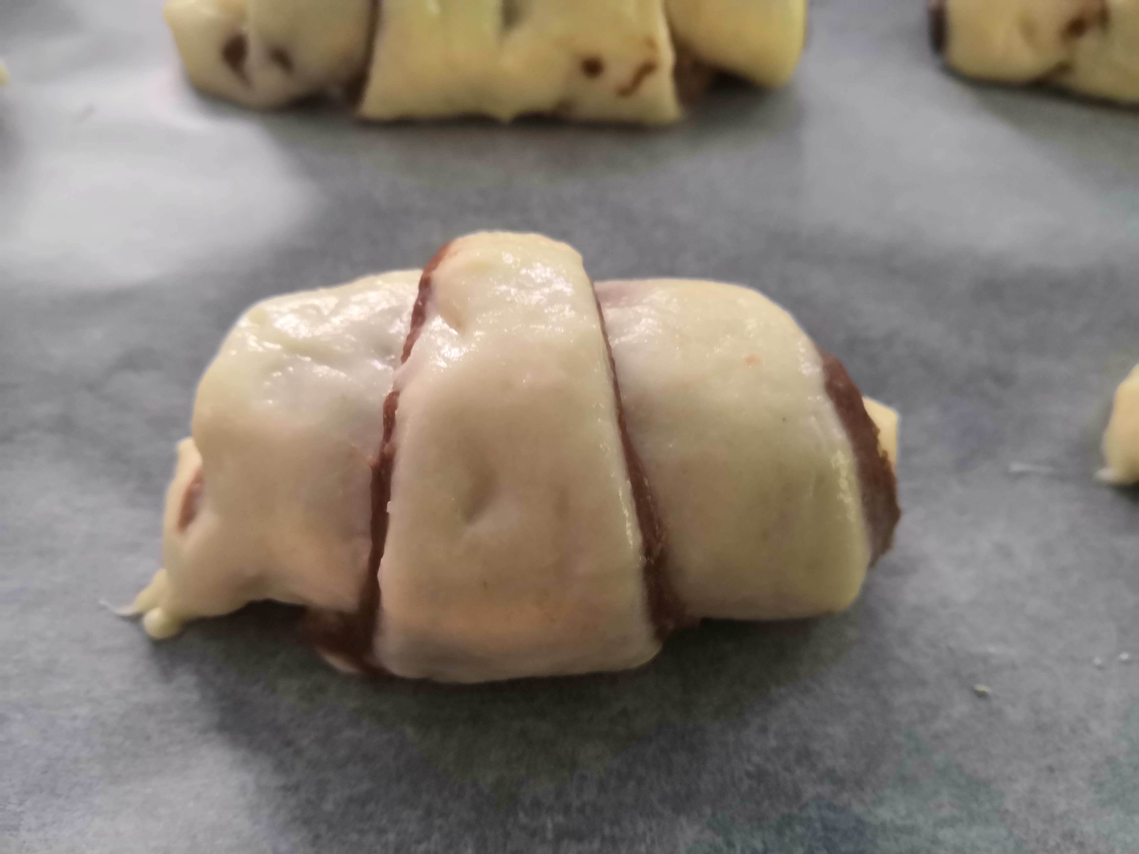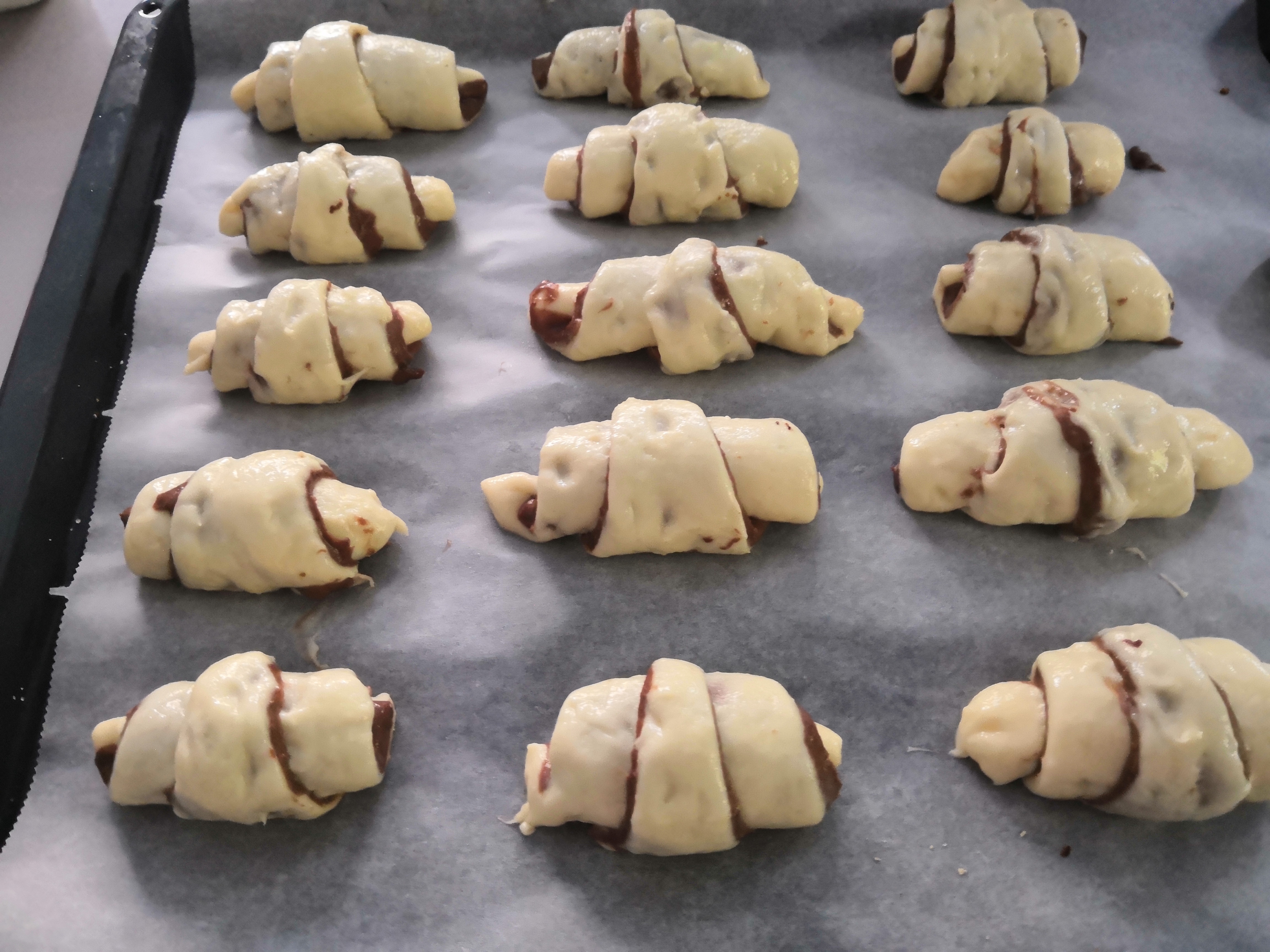 Muszáj megjegyeznem: a tészta roppant puha! Csak erős idegzetű konyhatündéreknek ajánlom! Ha kemény és könnyen formázható lenne, a végeredmény tuti nem ez lenne. Hanem kő. Vagy önvédelmi kiflicske. Olyan női ridikülbe való. Vagy egy jól irányzott ütés a fejre okozna maradandó károsodást, vagy a fogyasztó foga bánná. Van egy módszer, amivel a kevésbé türelmes tündérek is könnyen boldogulnak, méghozzá az olajos gumikesztyű. Nem az a súrolásra és mellékhelység takarítására használatos vastag fajta, hanem az a finom, sebészi kezekre pontosan illeszkedő, púdermentes, vékony kesztyű. Alaposan olajos kesztyű. Enélkül a segédeszköz nélkül, garantálom, hogy mindenki sárkánnyá változik formázás közben. Nem házivá, egyenesen hétfejűvé.