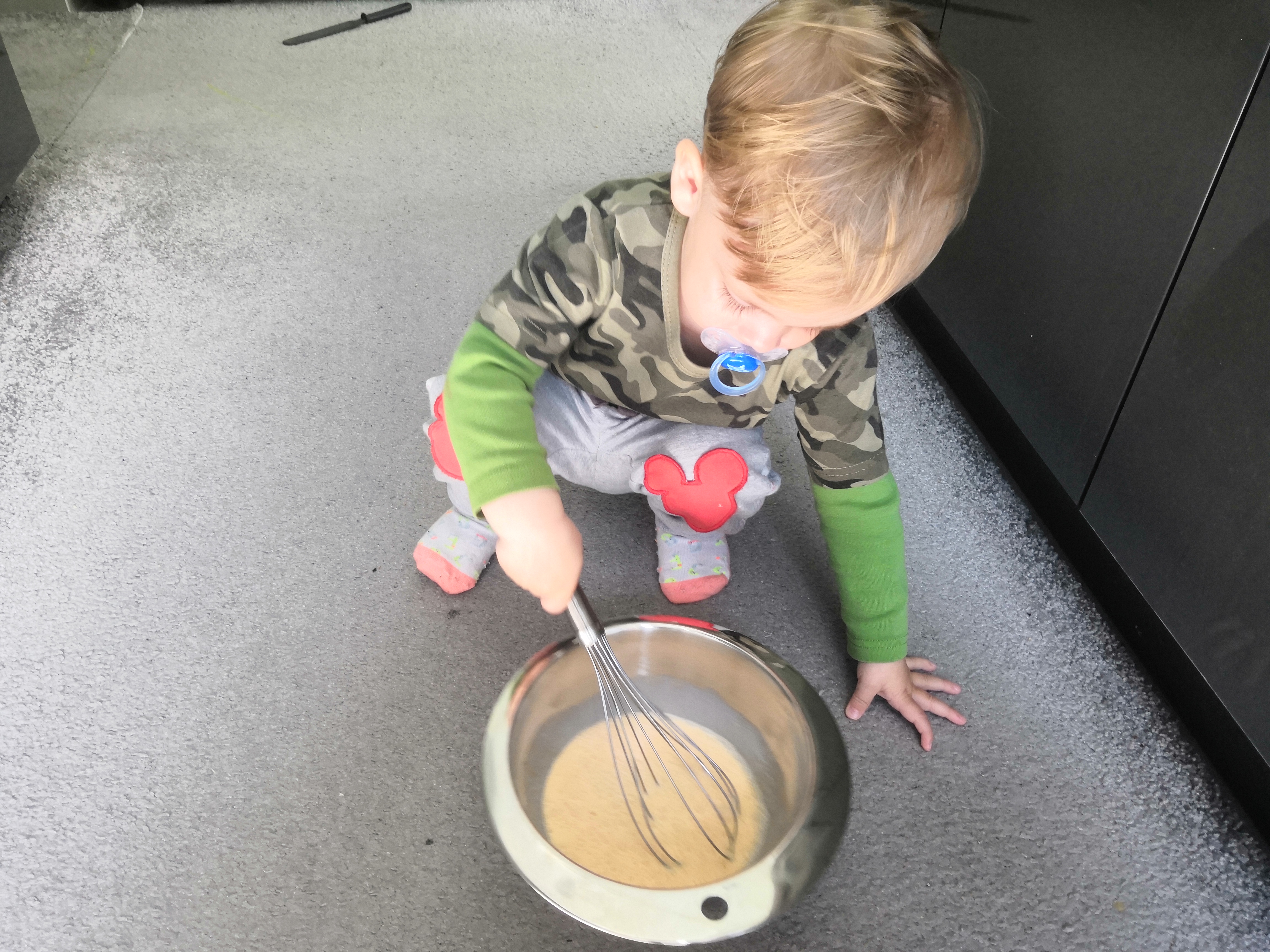 Egy igazán könnyed, egyszerű, gyors tortát gondoltam összedobni mandulaliszttel. A legevidensebb választás a svéd mandula torta volt: ezt mindenki szereti, nem lehet hibázni vele. Egyetlen apró hibaforrással nem számoltam, a kicsi séfemmel. A napokban töltötte be a 21 hónapot. Eddig lelkesen tanult. Hol csendes megfigyelőként, hol hangosan, az esetetek legnagyobb többségében méghangosabban szolgáltatta a sütés mellé az alapzajt. Úgy tűnik, beérett a folyamat, szintet léptünk, az elméleti tudást muszáj gyakorlati tapasztalattal megerősíteni. A konyha szintjét új alapokra kell helyezni, költöztetni, kicsit alább vagy inkább lejjebb kell vinni. Egészen a földig. A lelkes segédem gyanítom erre született, habverővel a kezében: