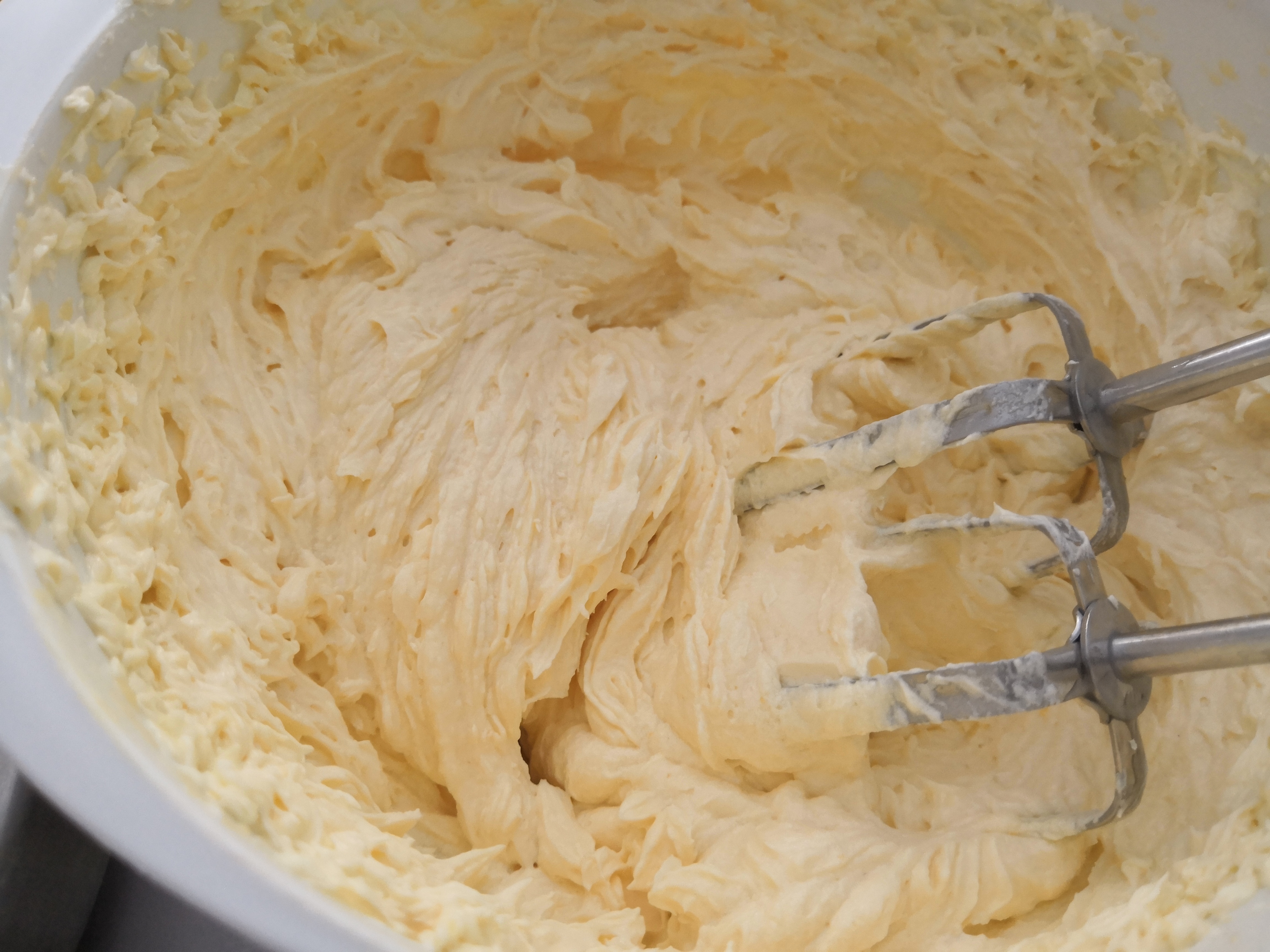 - A margarint keverjük habosra és adjuk hozzá a lehűtött tojásos krémet