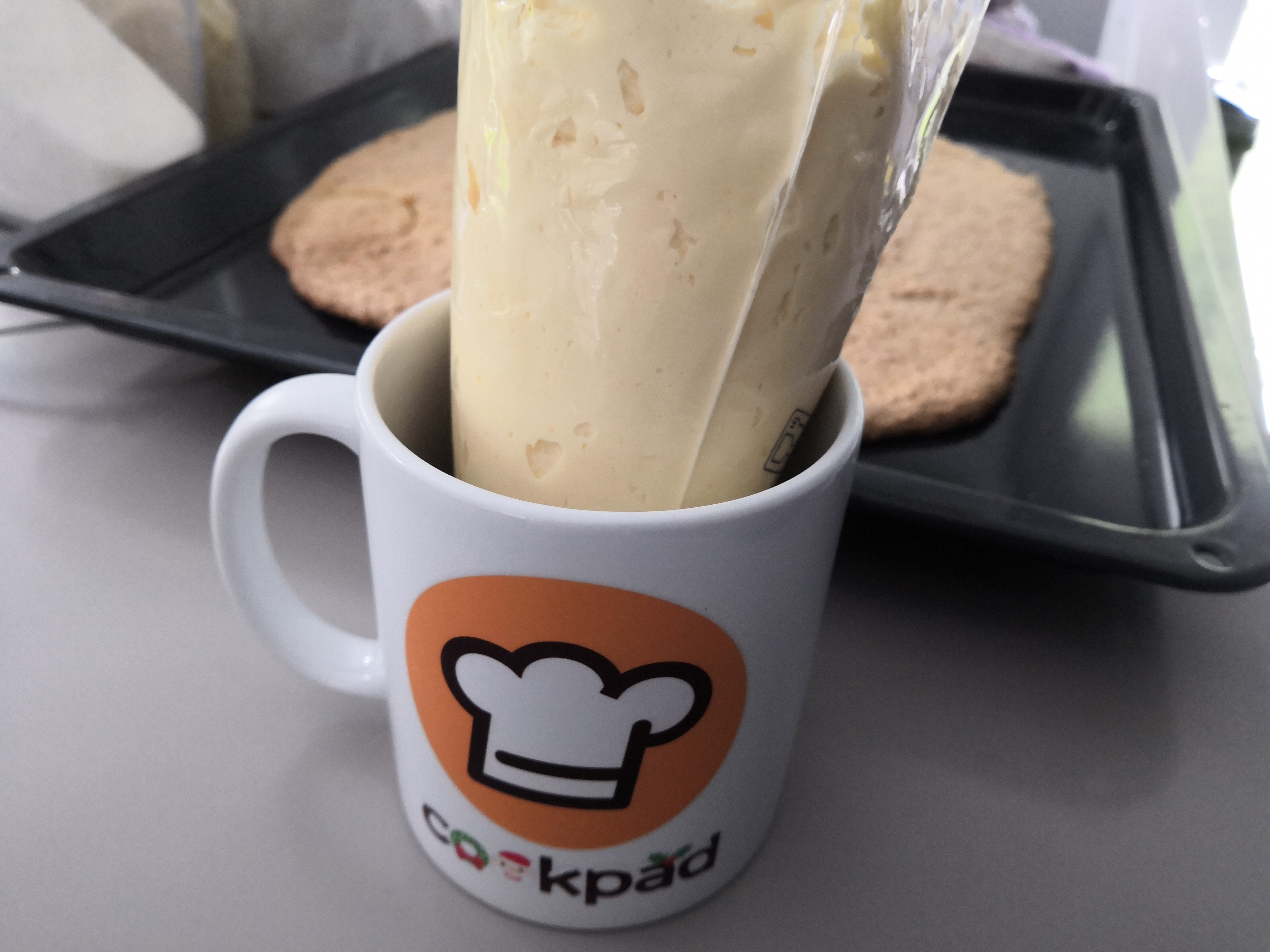 - A lapot tördeljük tetszőleges darabokra, a krémet töltsük habzsákba