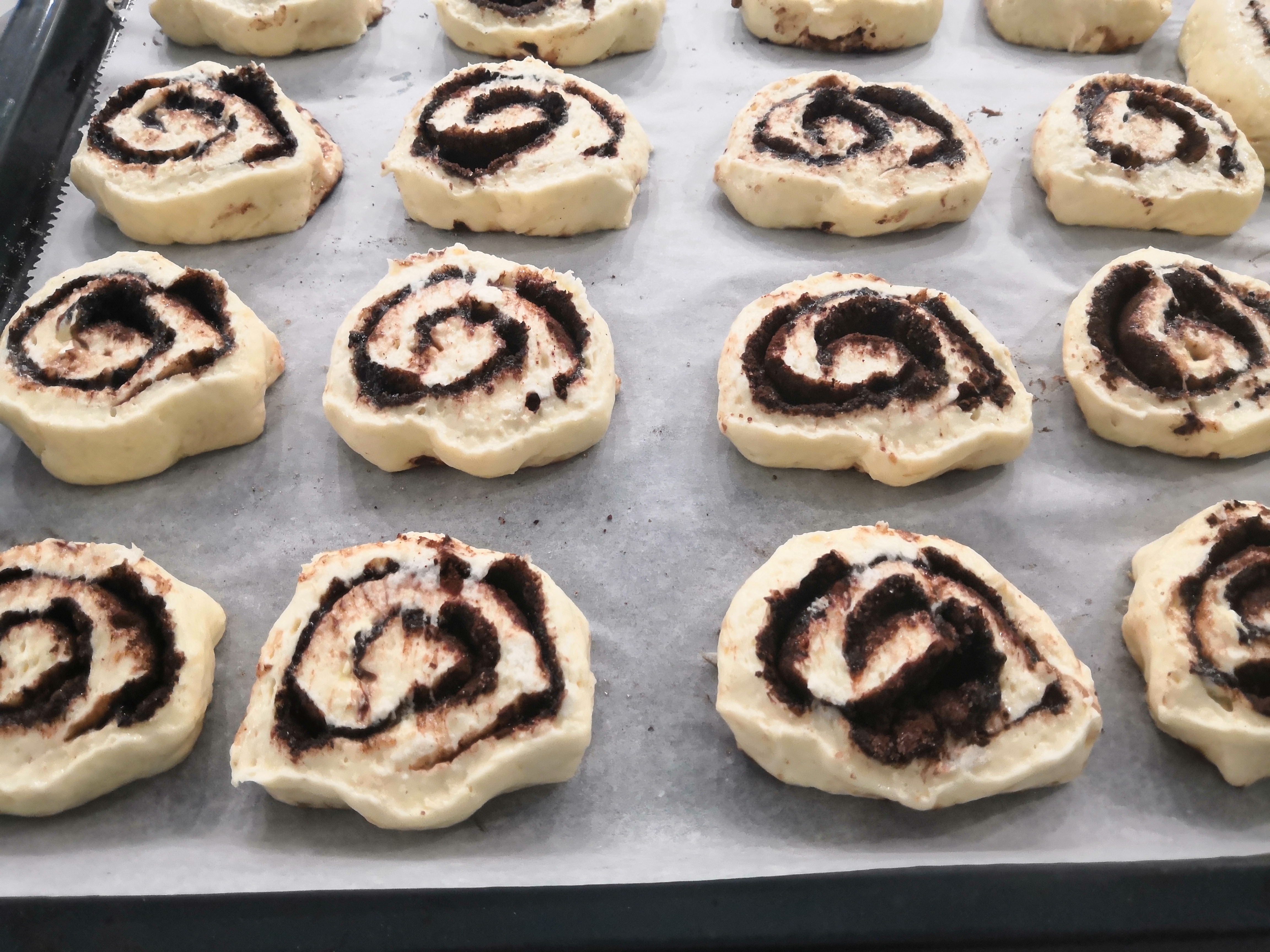 - A rizstejet összekeverjük a 3 teáskanál cukorral és megkenjük a megkelt csigák tetejét.