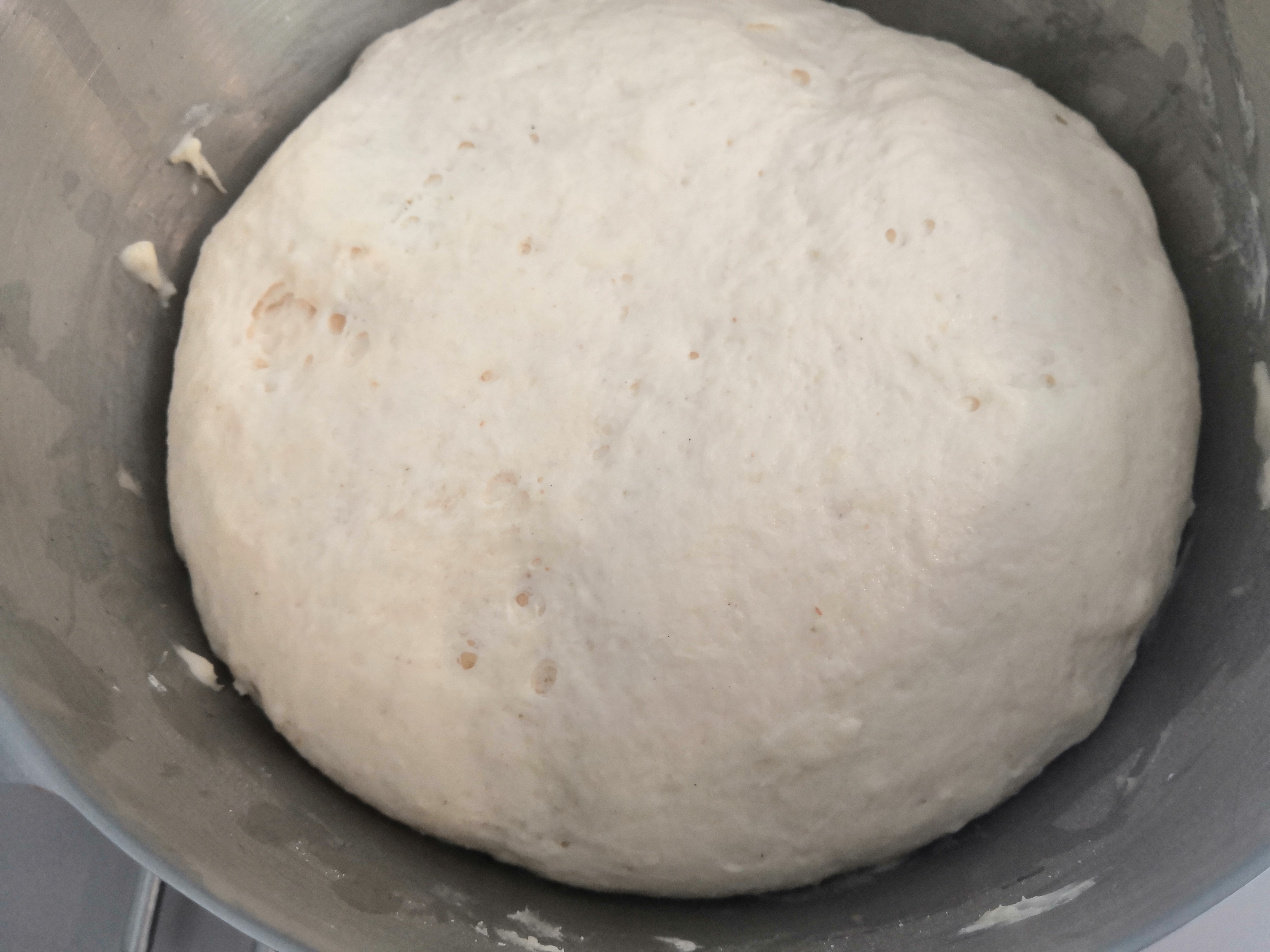- A megdagasztott tésztát olajos kézzel (én gumikesztyűt szoktam húzni) átgyúrjuk és letakarva 50 percet kelesztjük.