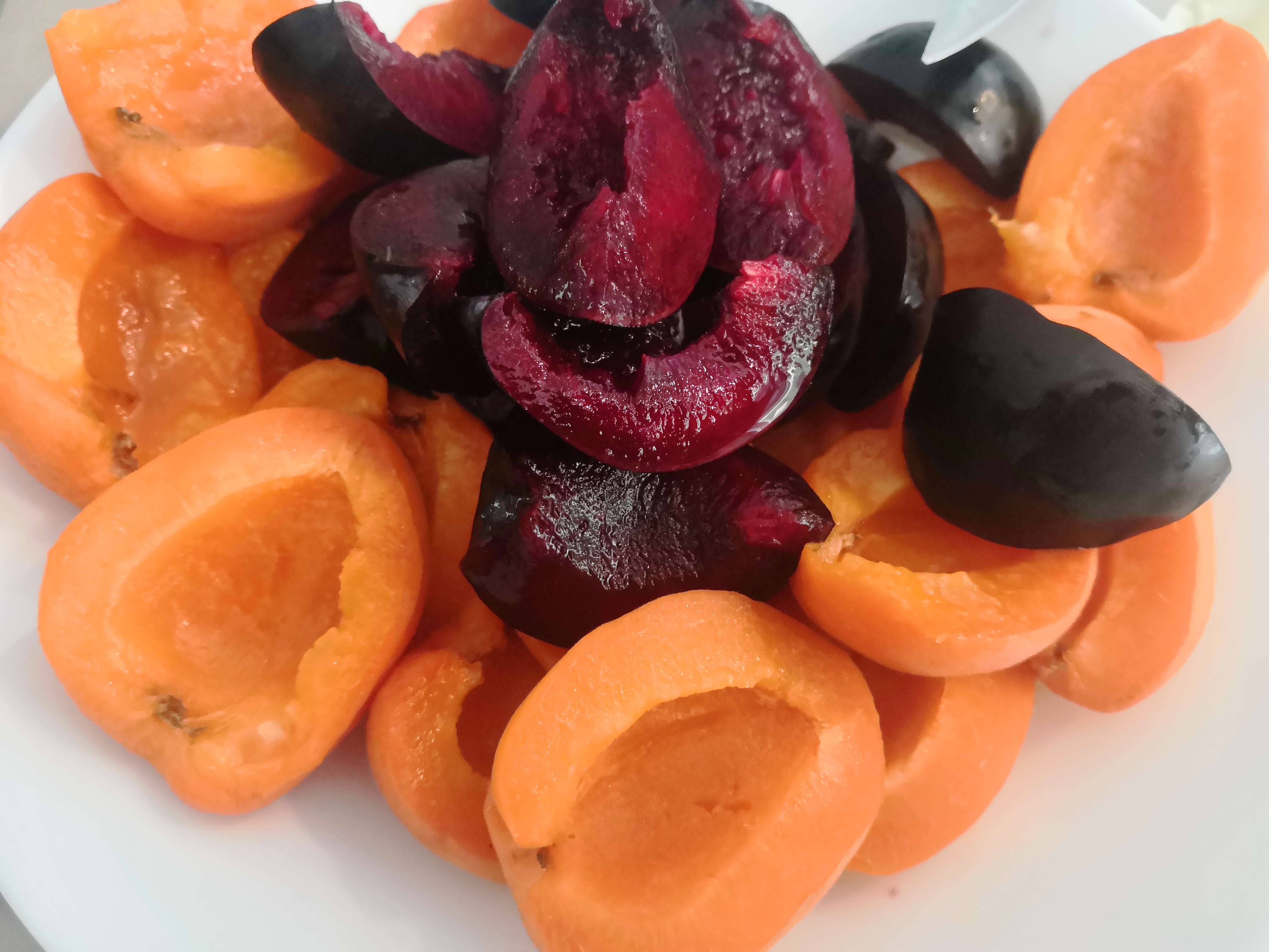 - A gyümölcsöt alaposan megmossuk és daraboljuk (én negyed barackot és fél szilvát tettem a gombócokba)