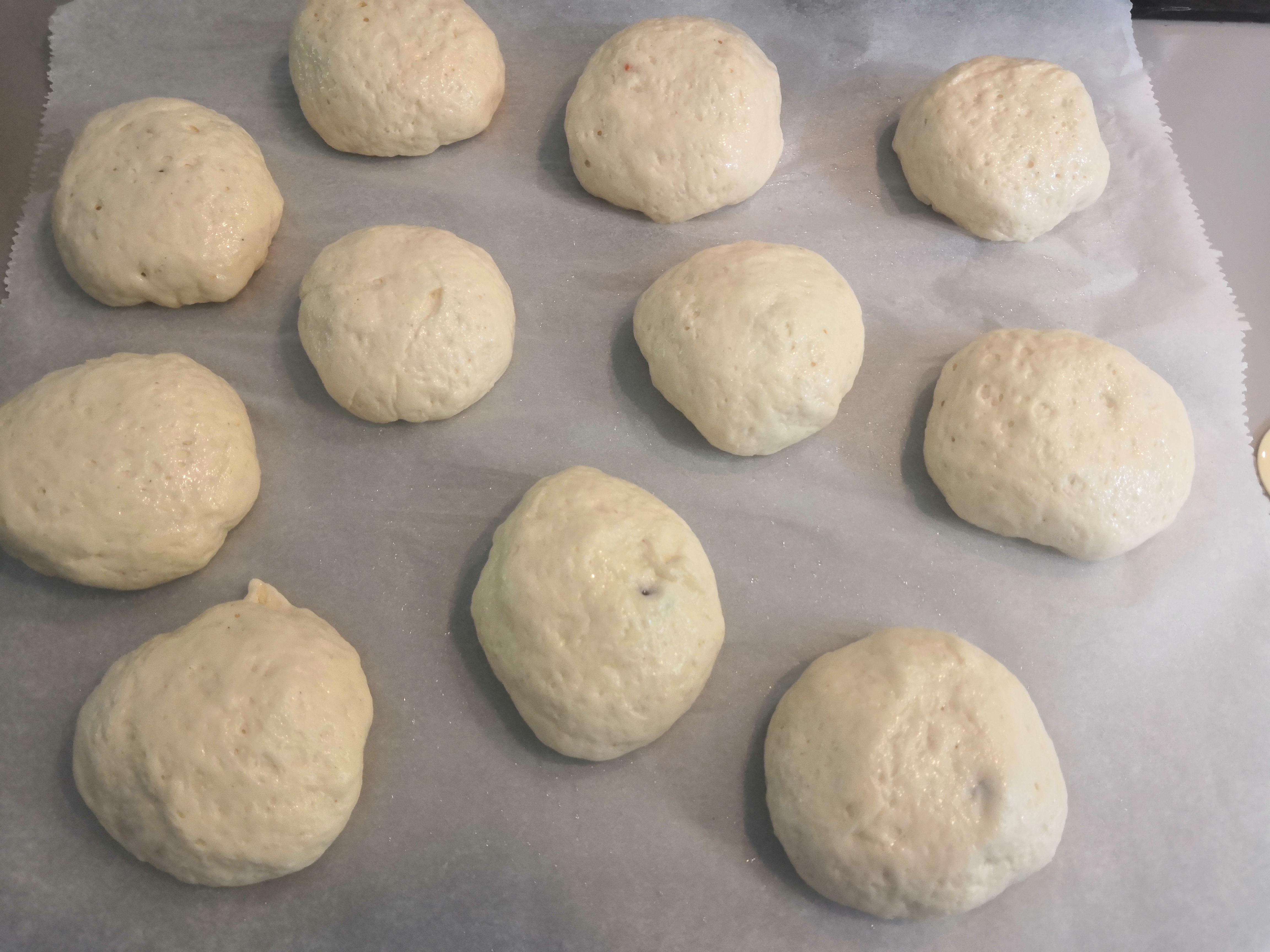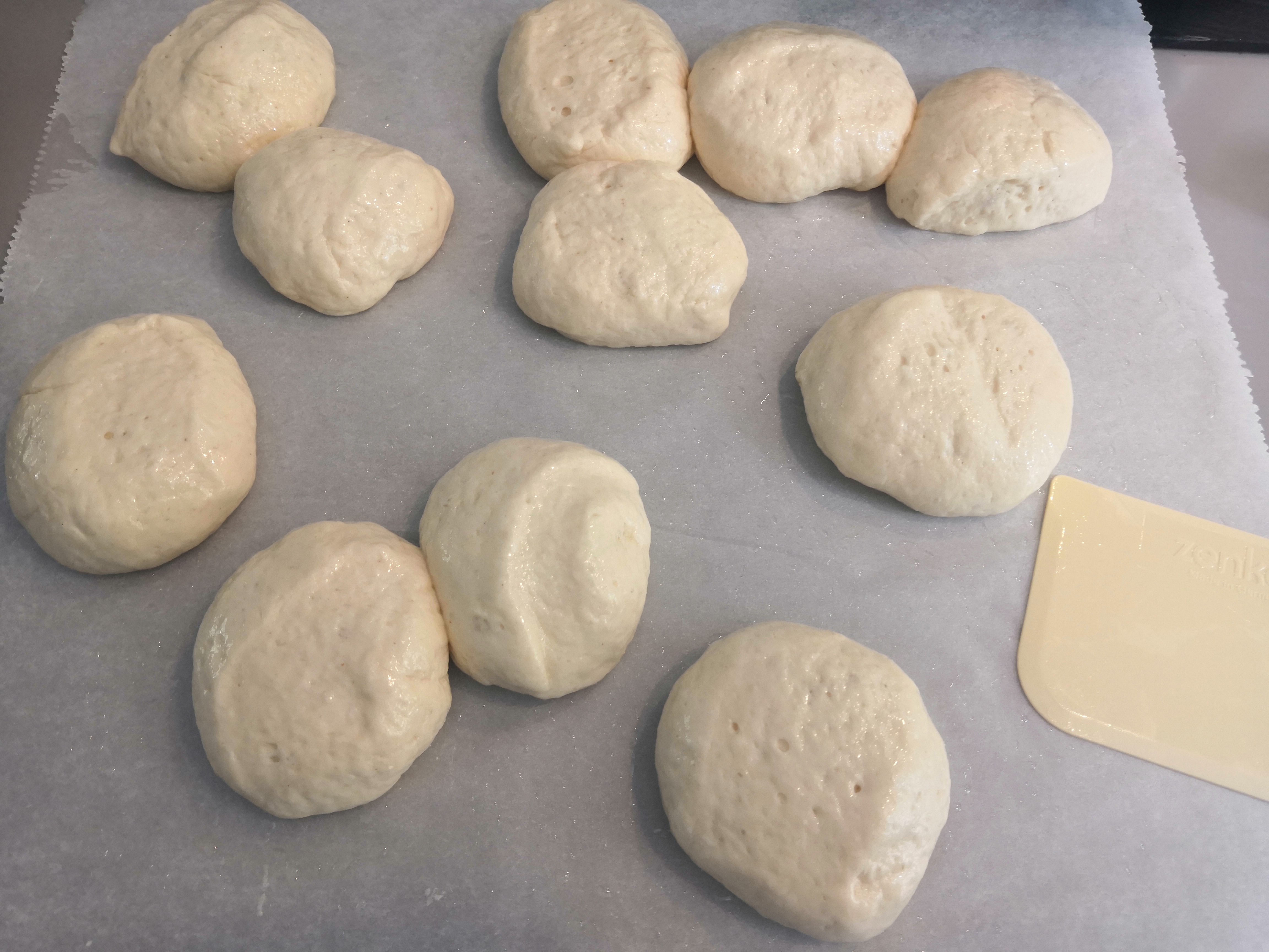 - A megkelt tésztát 10-12 egyenlő részre osztjuk és bucikat formálunk belőle