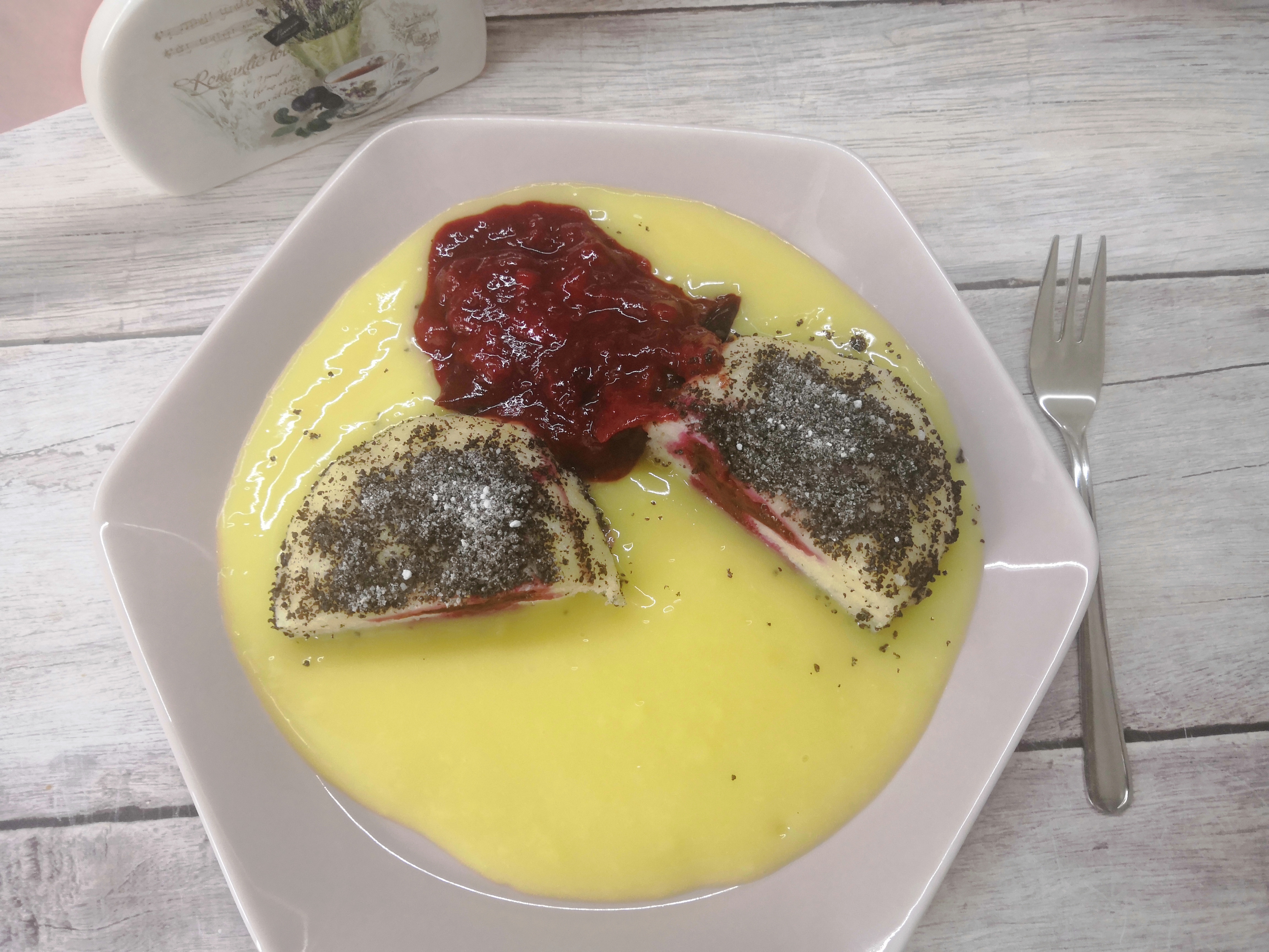 Vanília sodóval, gyümölcs mártással tálaljuk. Jó étvágyat hozzá!