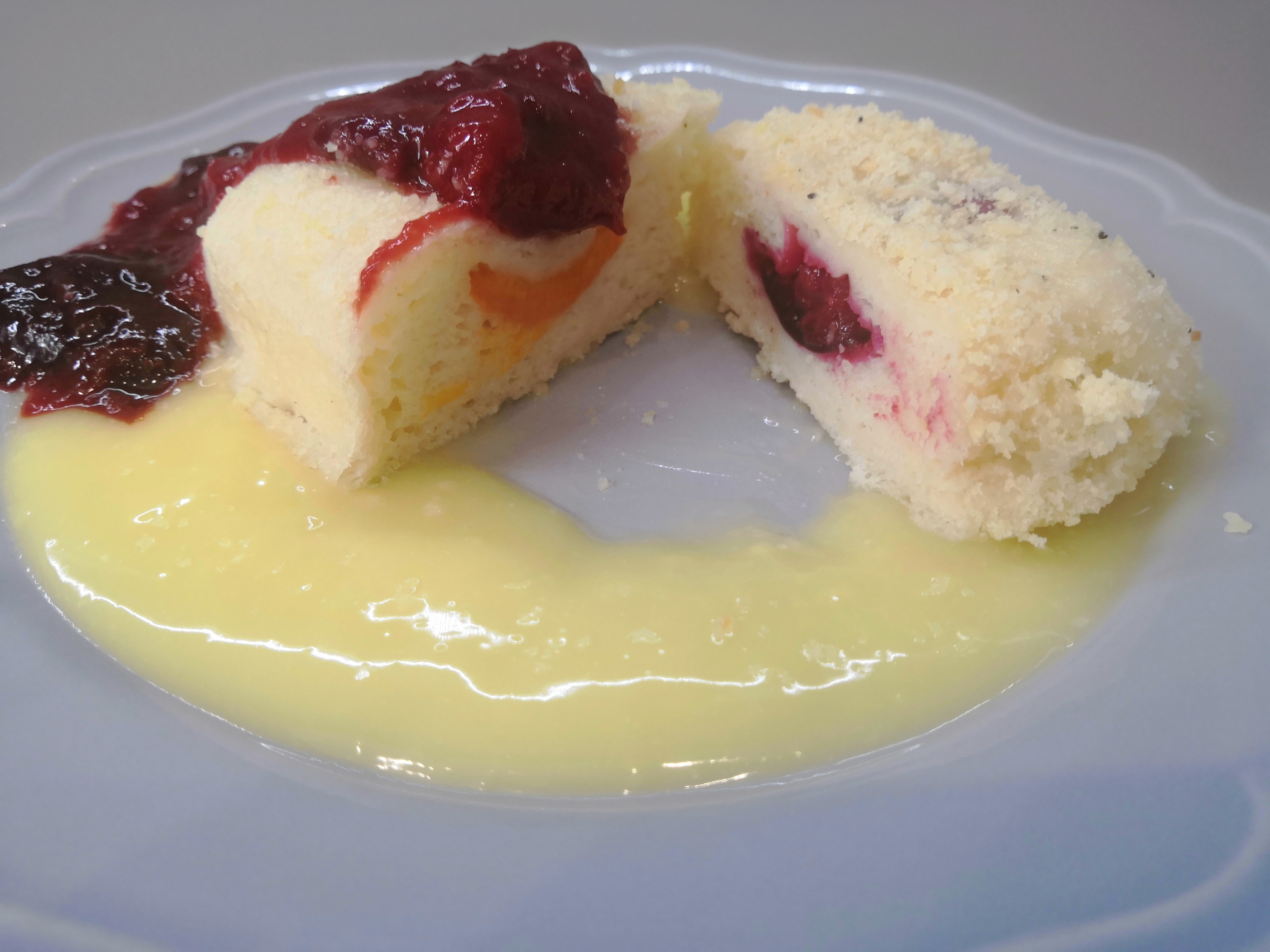 Van már egy nagyon szuper knédli receptem, amit a Cookpadre töltöttem fel, az egy lisztkeverékmentes változat. Mivel nagyon nagy sikere volt itthon a natur knédlinek hús mellé köretnek és mákosan, vaníliás sodóval, ezért úgy gondoltam, megpróbálok egy gyümölcsös variációt is.