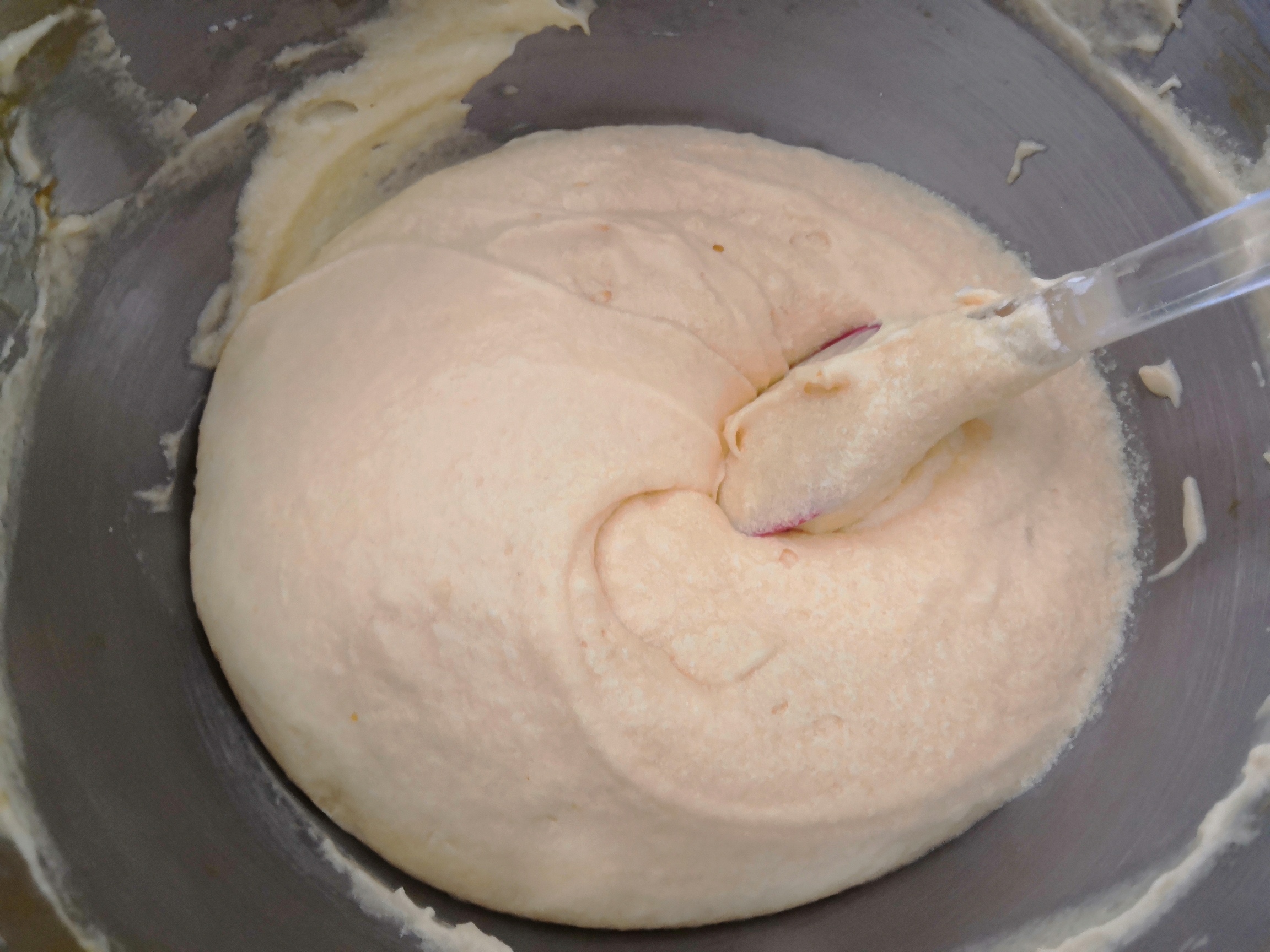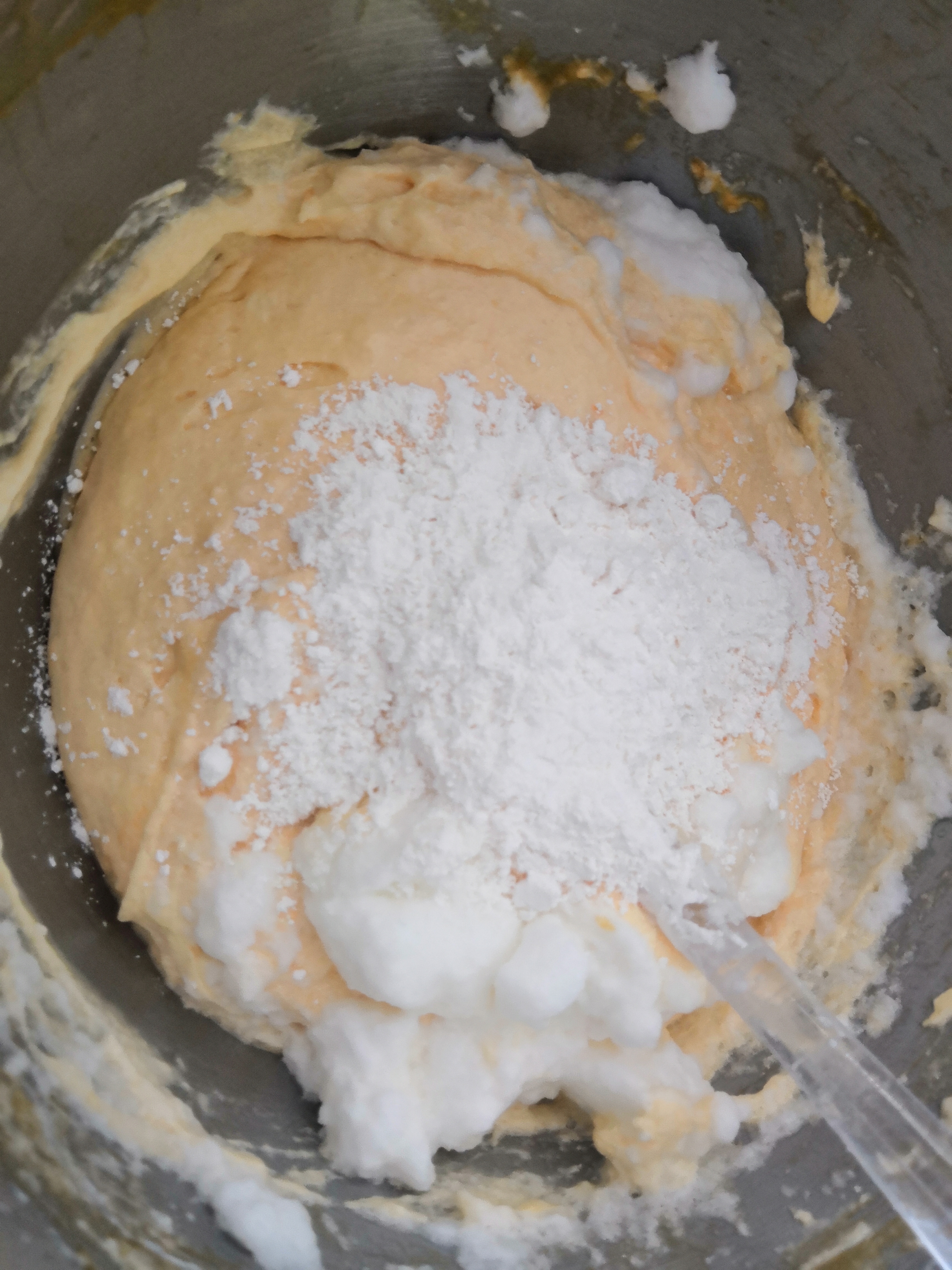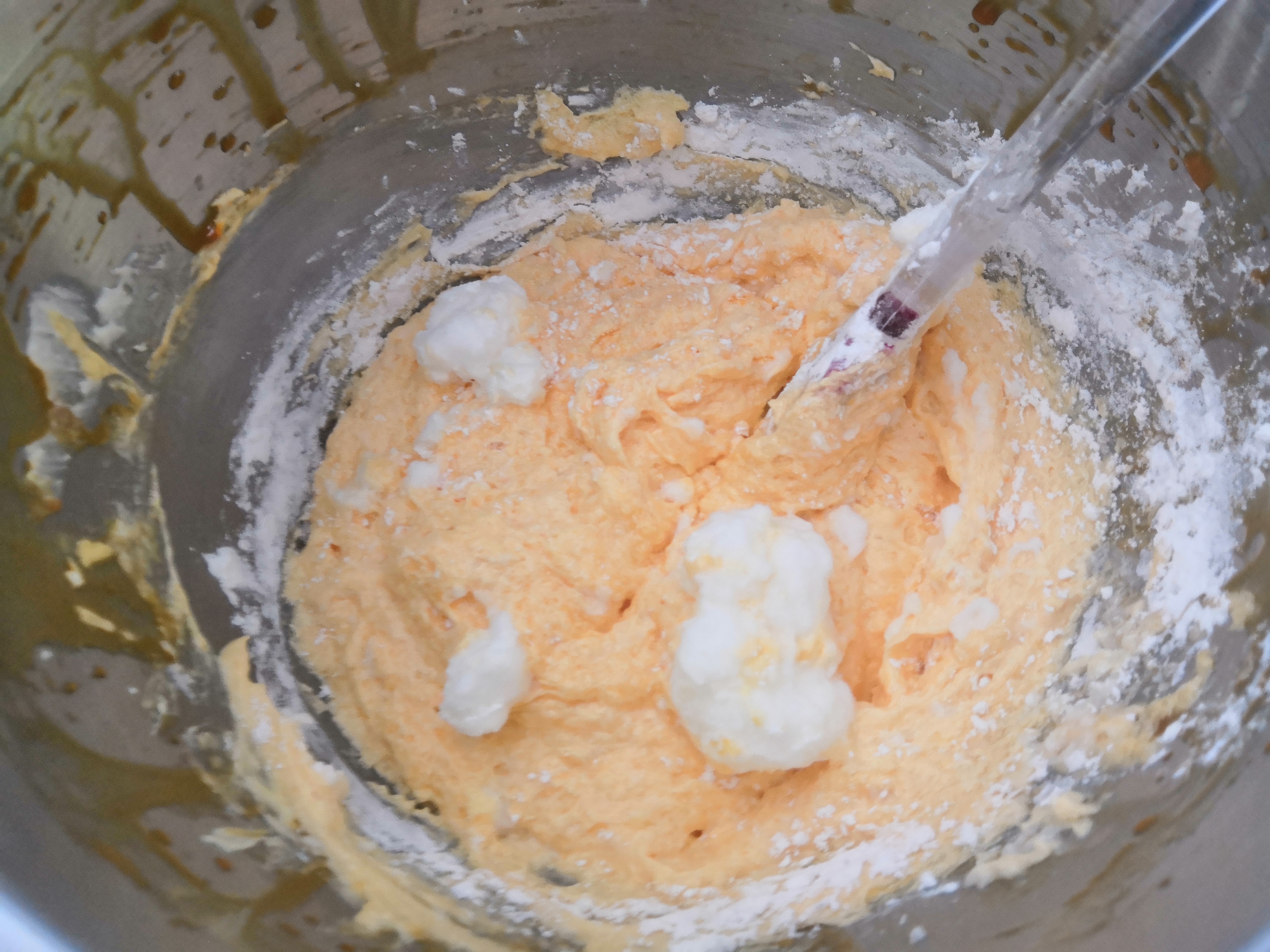 - Óvatosan adjuk hozzá a lisztet és a felvert fehérjét váltakozva, apránként