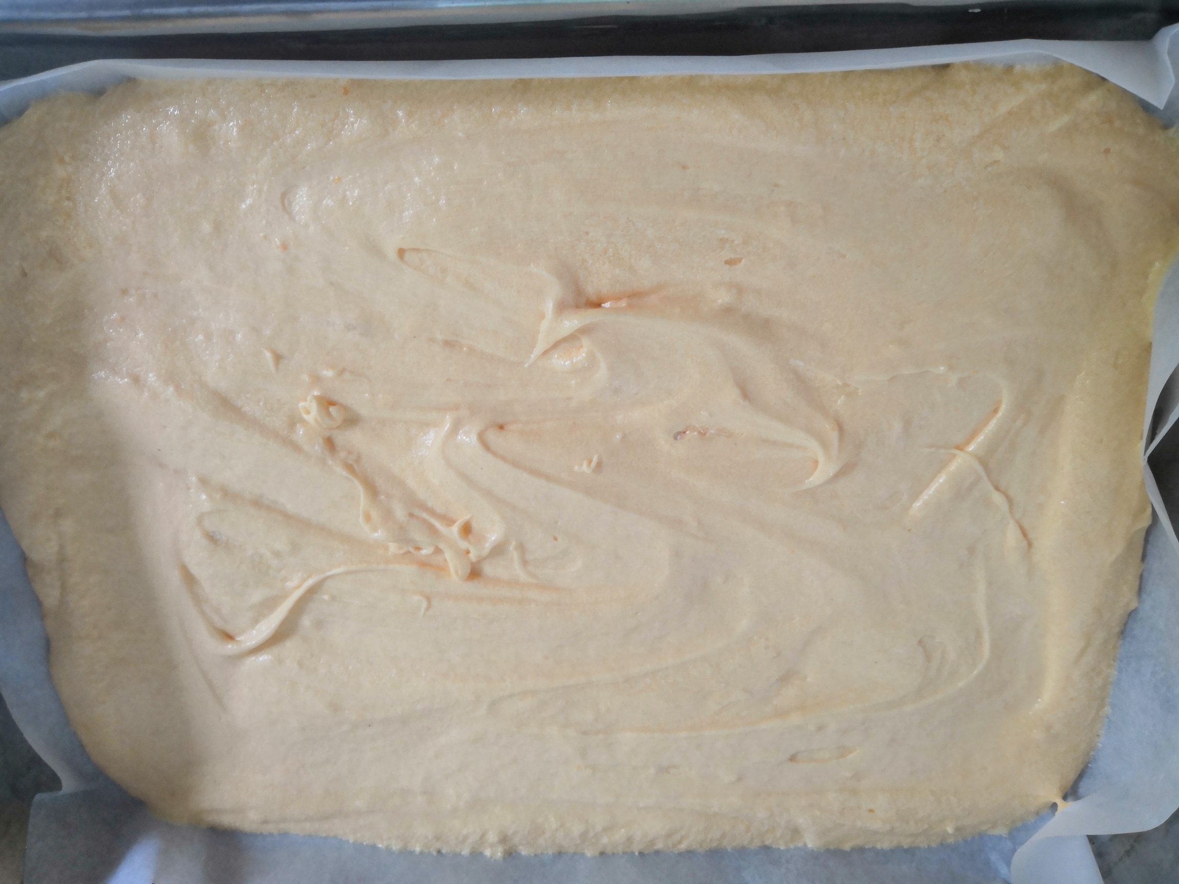 - Simítsuk a tésztát kb 25×30 cm-es, sütőpapírral bélelt tepsibe