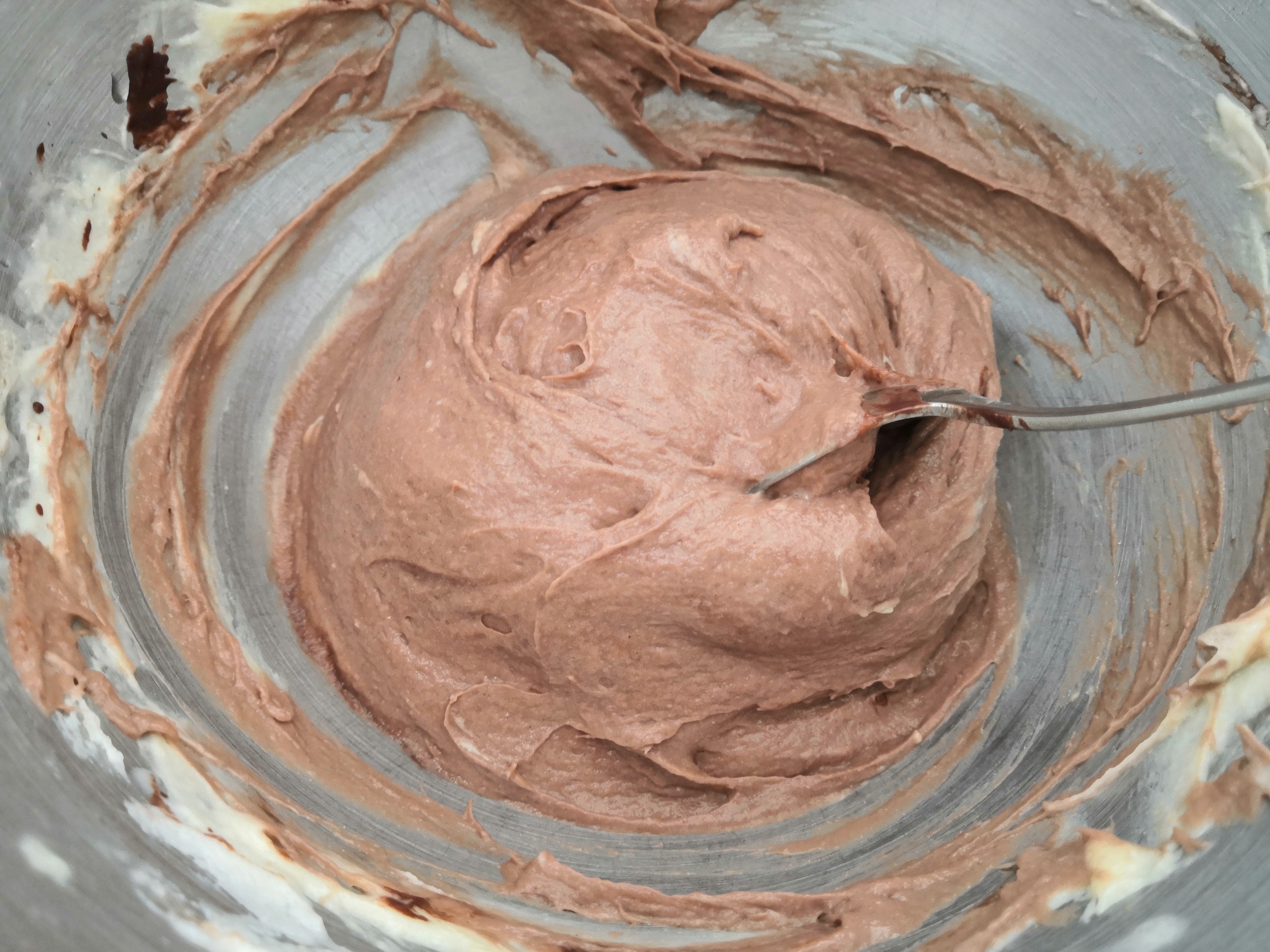 - A kakaót összekeverjük a 40 g tejjel belekeverjük az egyik adag masszába