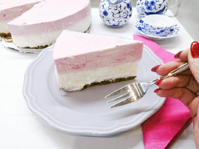És belevágtam. És elsőre sikerült és tökéletesen működik!!!! Most igazából nem tudom eldönteni, hogy a zselatin vagy az ima segített, de gyönyörű és hihetetlen finom. Olyan igazi könnyed, légies, mintha felhőbe harapna az ember. A savanykás, citromos réteghez tökéletesen passzol az erdei gyümölcsös ízvilág és teszi erre fel a koronát az enyhén csokis, roppanós keksz alap.