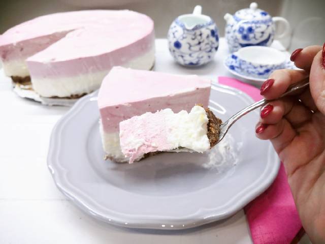 Már sok, sok évvel ezelőtt felkerült a bakancslistámra a joghurttorta, de bevallom igencsak tartottam tőle. Olyan kis mumusnak tűnt, kizárt dolognak tartottam, hogy az én két bal kezemmel ez sikerülhet(a jobb kezem ugye a Kolos Kurtán 😉). Biztos voltam benne, hogy minden egyes joghurttortához egy le nem írt összetevő, egy ima, egy fohász tartozik, ami vhogy így kezdődik: hűtők és zselatinok istene, kérlek benneteket kössetek együtt, adjátok meg nekünk a mennyei látványt, ne hagyjátok a színeket keveredni, a rétegeket összefolyni…