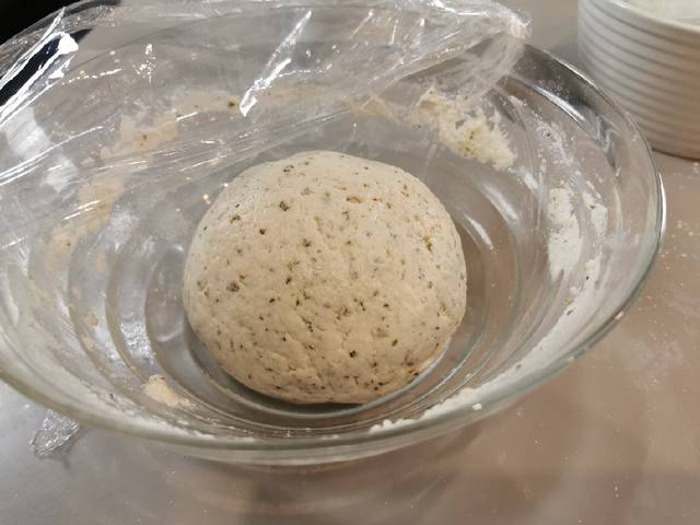 A tészta száraz hozzávalóit egy keverőtálban keverjük össze. Ehhez adjuk a vizet és gumikesztyűs kézzel (dagasztógépben vagy keverőgép dagasztó spiráljával is dolgozhatunk) gyúrjuk össze, miközben az olajat fokozatosan adjuk hozzá.