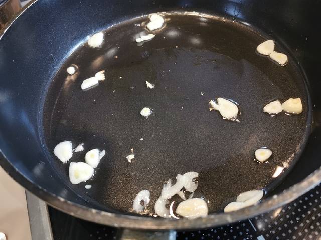 A fokhagymát vágjuk nagyobb darabokra és futtassuk meg az olíva olajon.