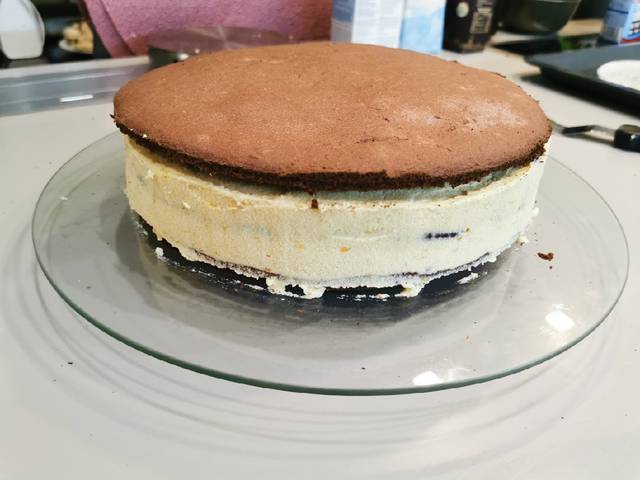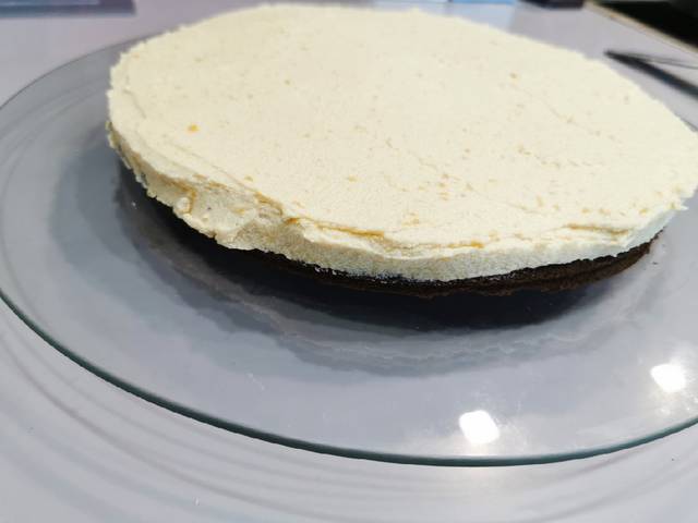 Összeállítás: a krémet elfelezzük, és az alsó piskóta lapra kenjük a felét. Erre jön a keksz lap, a krém másik fele és piskótával lezárjuk.