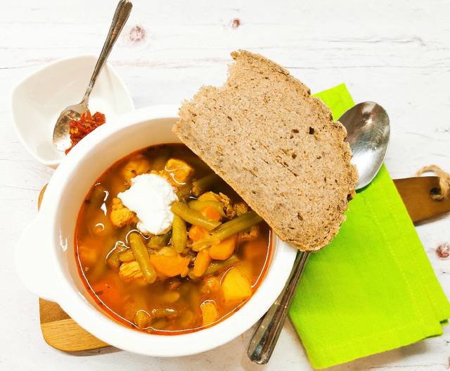 Tálaljuk ízlés szerint tejföllel/vega cremmel, kenyérrel vagy nokedlivel.