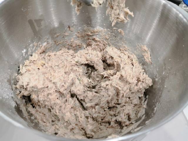 Az összes hozzávalót, az étolaj kivételével, pontosan kimérjük egy keverőtálba vagy a dagasztógépbe. Dagasztógépben vagy a keverőgép dagasztó spiráljával megdagasztjuk miközben az olajat fokozatosan adjuk hozzá.