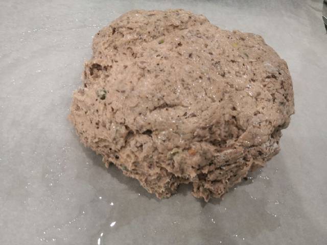 A megdagasztott tésztát olajos kézzel (én gumikesztyűt szoktam húzni) nagyon alaposan átgyúrjuk, ízlés szerint formázzuk. A tetejét meghintjük barna rizsliszttel.