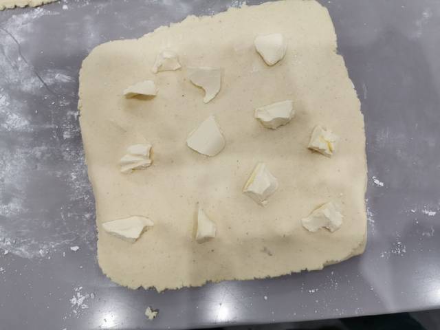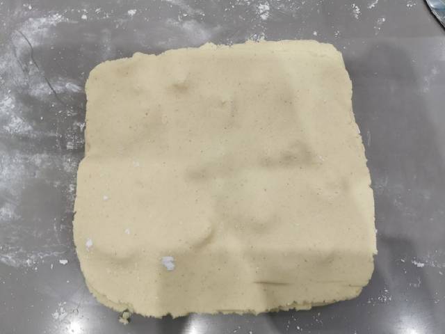 A rétegezett tésztát ezután kb ujjnyi vastagra nyújtjuk
