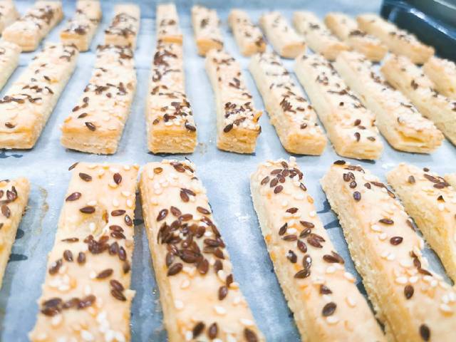 Ezek a sós, magos rudacskák pontosan olyanok, mintha leveles tésztából készültek volna. Nem kell hajtogatni, pihentetni, pár mozdulat, némi gyúrás, nyújtás, vágás és már mehetnek is a sütőbe.