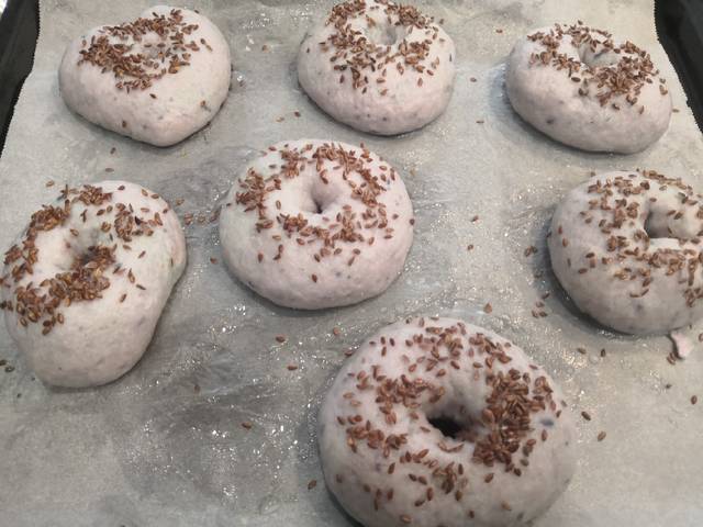 Éppen párolt káposztát készítettem ebédre lila káposztából, mikor bevillant lila bagel kell ebből. Hát így született meg ez a fantasztikus péksüti.