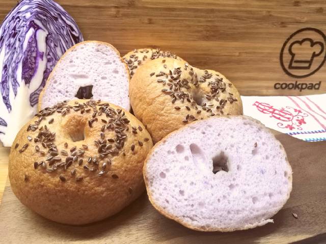 Éppen párolt káposztát készítettem ebédre lila káposztából, mikor bevillant lila bagel kell ebből. Hát így született meg ez a fantasztikus péksüti.