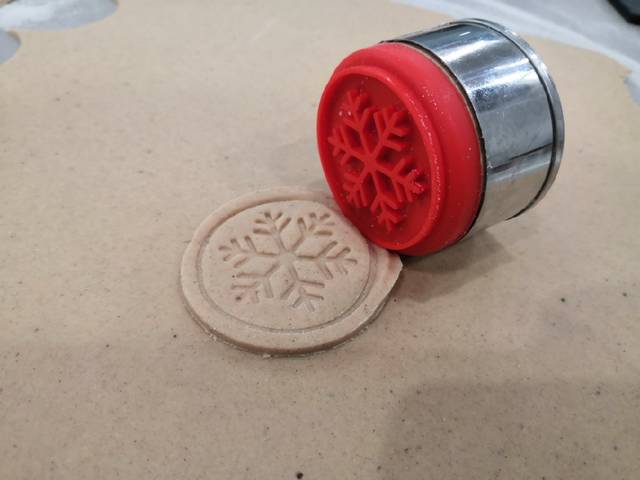 Rizsliszttel megszórt felületen nyújtsuk kb. 2 mm vastagra és szaggassuk tetszőleges formával.