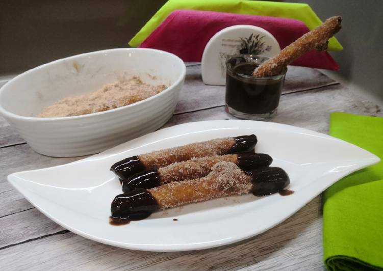 Még soha nem ettem igazi churrost, sőt a kamaszom sem. Már jó ideje rágja a fülemet, próbáljuk már ki, mert biztos fantasztikus lehet. A minap kiselőadást tartott a töltött churros készítéséről, próbált meggyőzni, hogy az mennyire egyszerű, csak alufóliát kell a közepébe sütni, azt jól kihúzni ha megsült és mehet bele a krém. Ohhh persze, még sima churrost sem gyártottam soha, akkor pont töltögetőssel kezdem… A sima viszont már pipa. Jöhet a töltött!