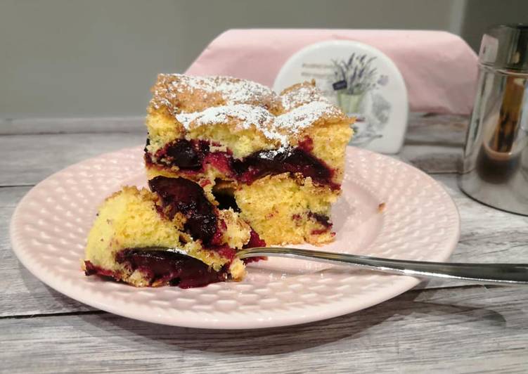 Talán minden sütemény közül a legnagyobb kedvencem a szilvás lepény, de ez a pillanatok alatt összedobható kevert tészta sem rossz választás, csak jó sok szilva legyen benne. Vagy más gyümölcs, ami éppen érik. Téli napokon pedig tökéletesen megfelelő hozzá a fagyasztó mélyen megbújó gyümölcs is. Legközelebb a tetejét megszórom darabolt dióval vagy mandulával.